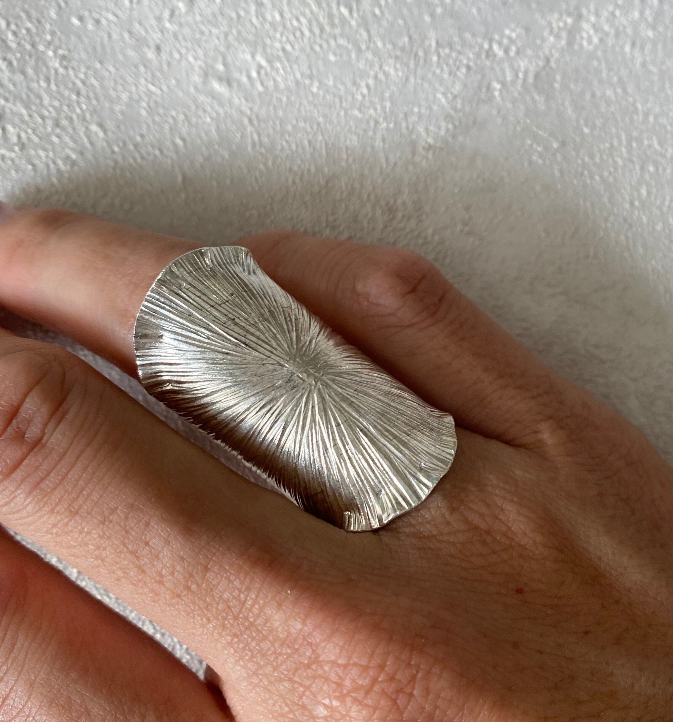 純度の高いシルバーならではのマッドな光沢感や上品さ、またハンドメイド特有の温かみがシンプルながら存在感があり、欧米でも人気の高いシルバーです。