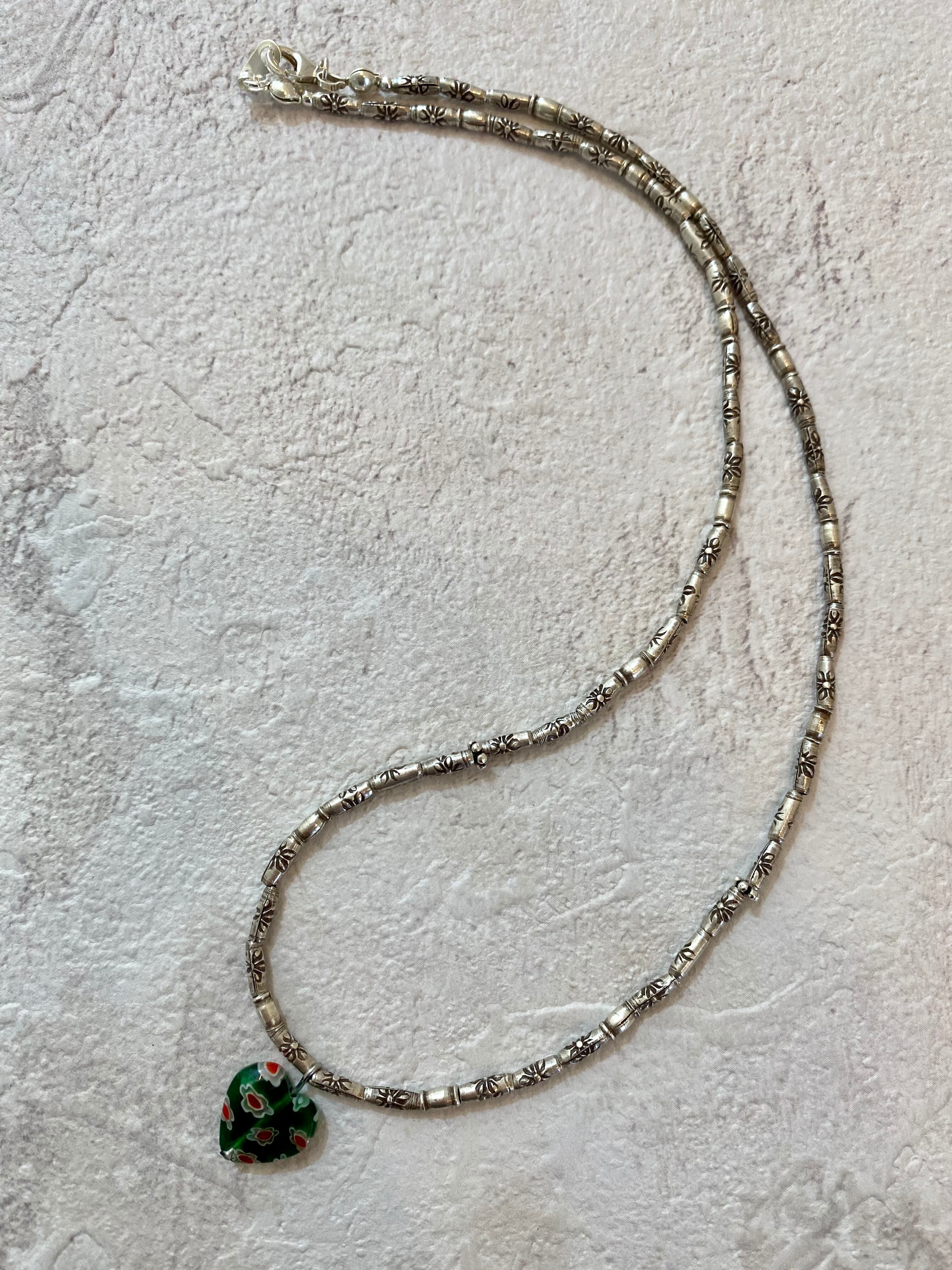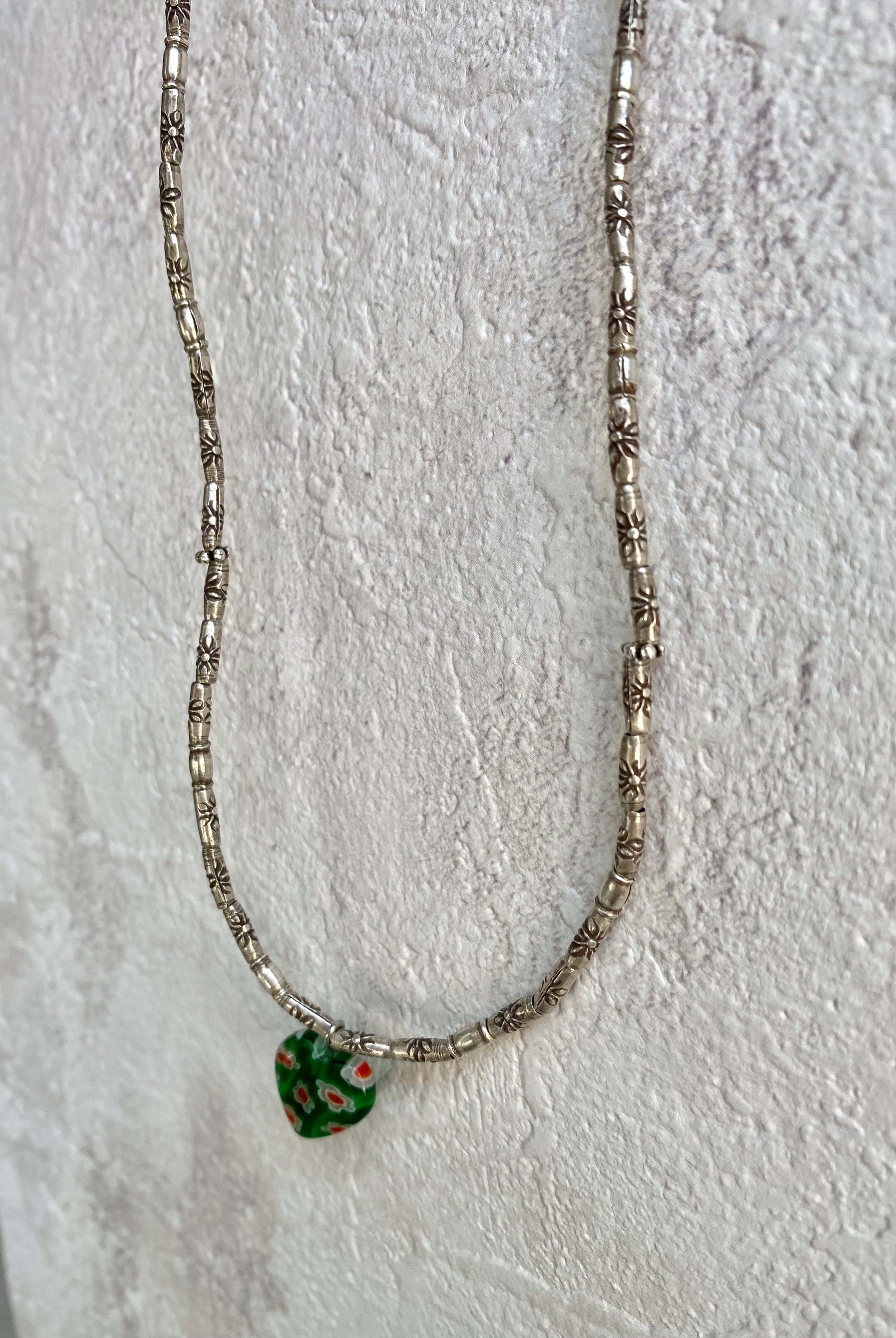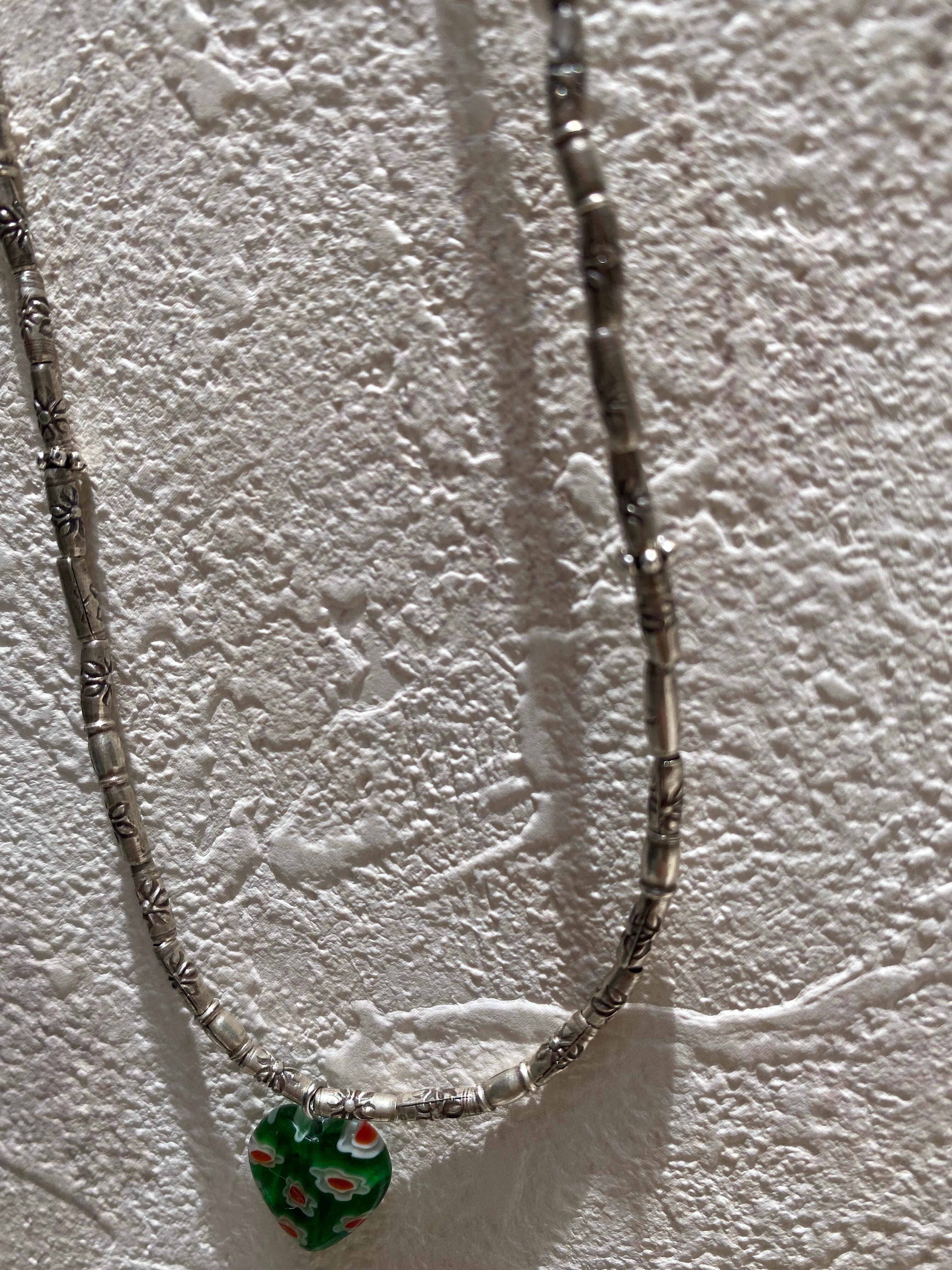 カレンシルバー チューブネックレス グリーンハート