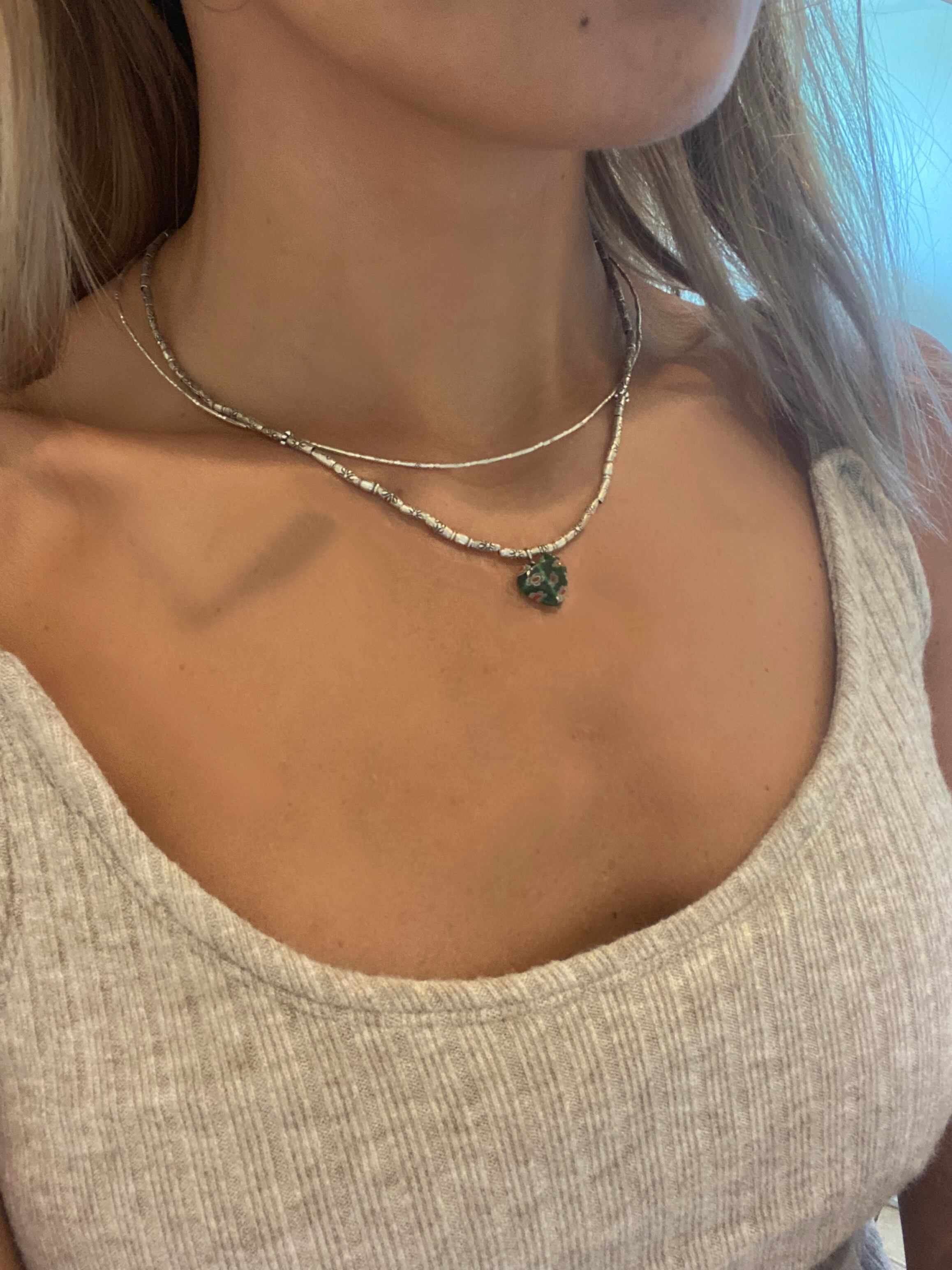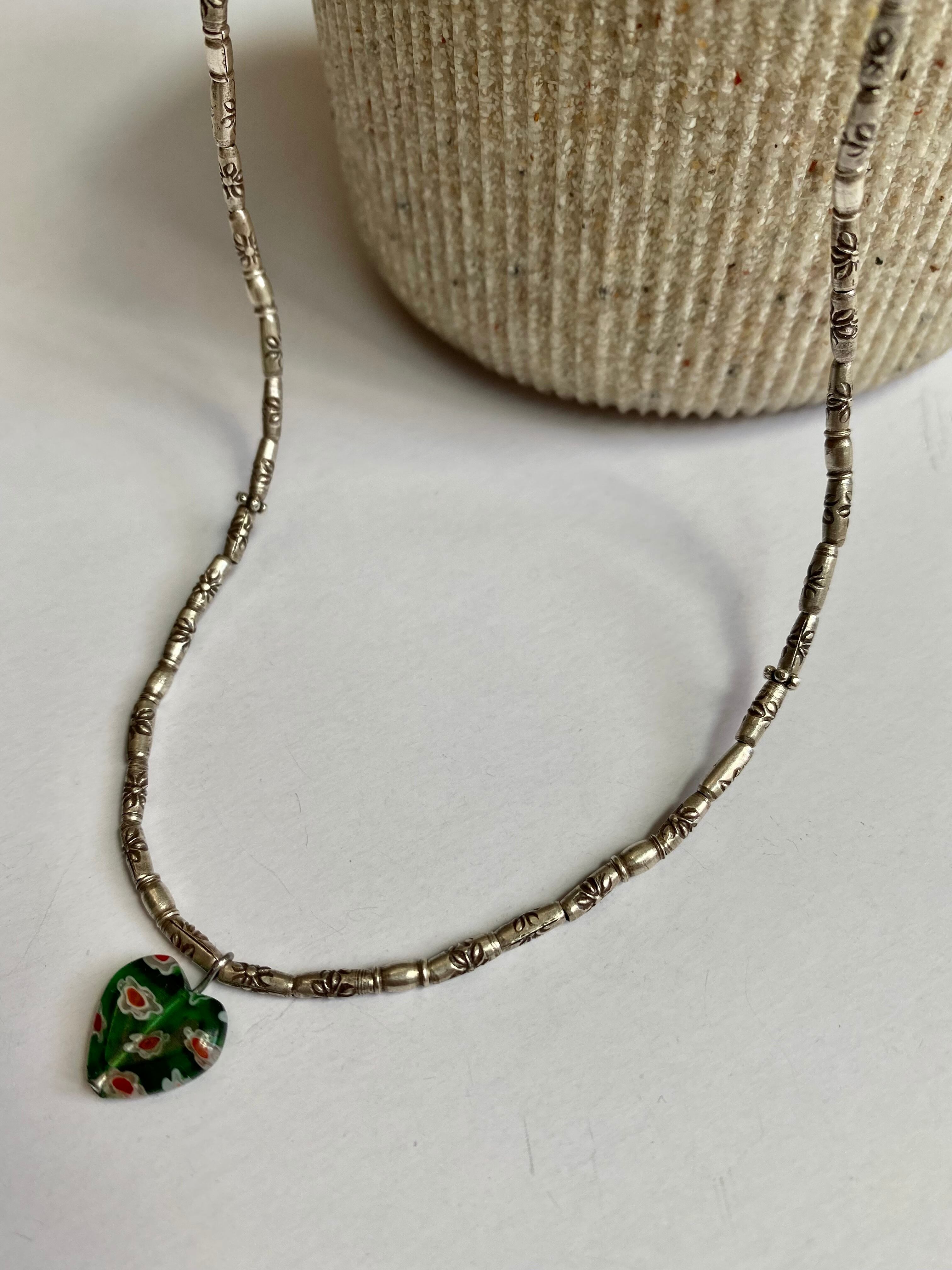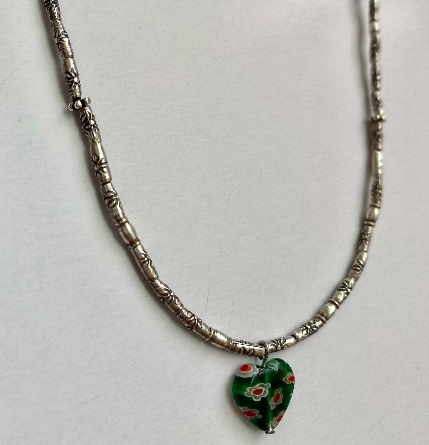 カレンシルバー チューブネックレス グリーンハート