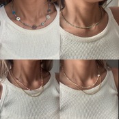 重ね付けしてるゴールドのシンプルチェーンネックレスは別売りです。