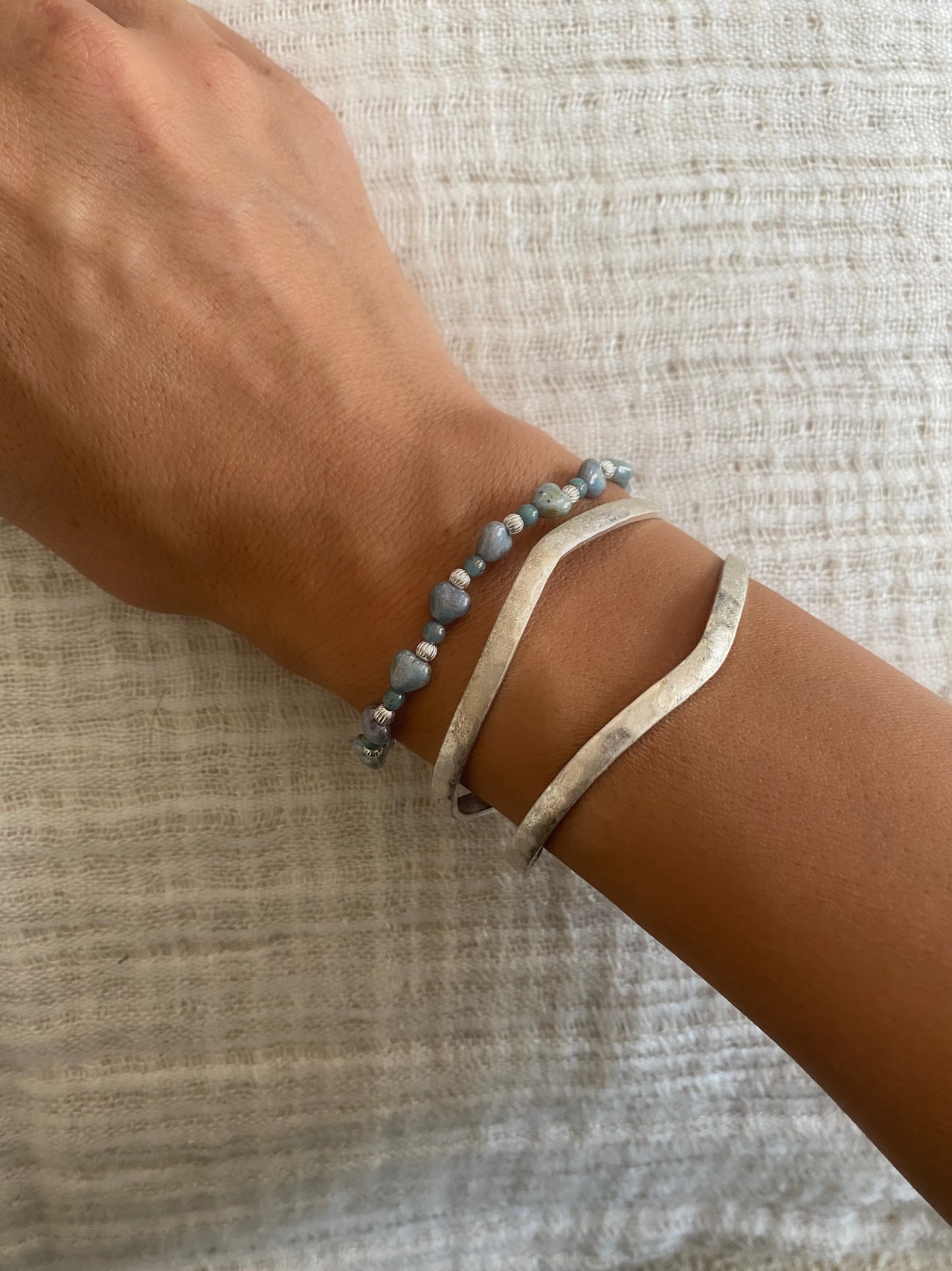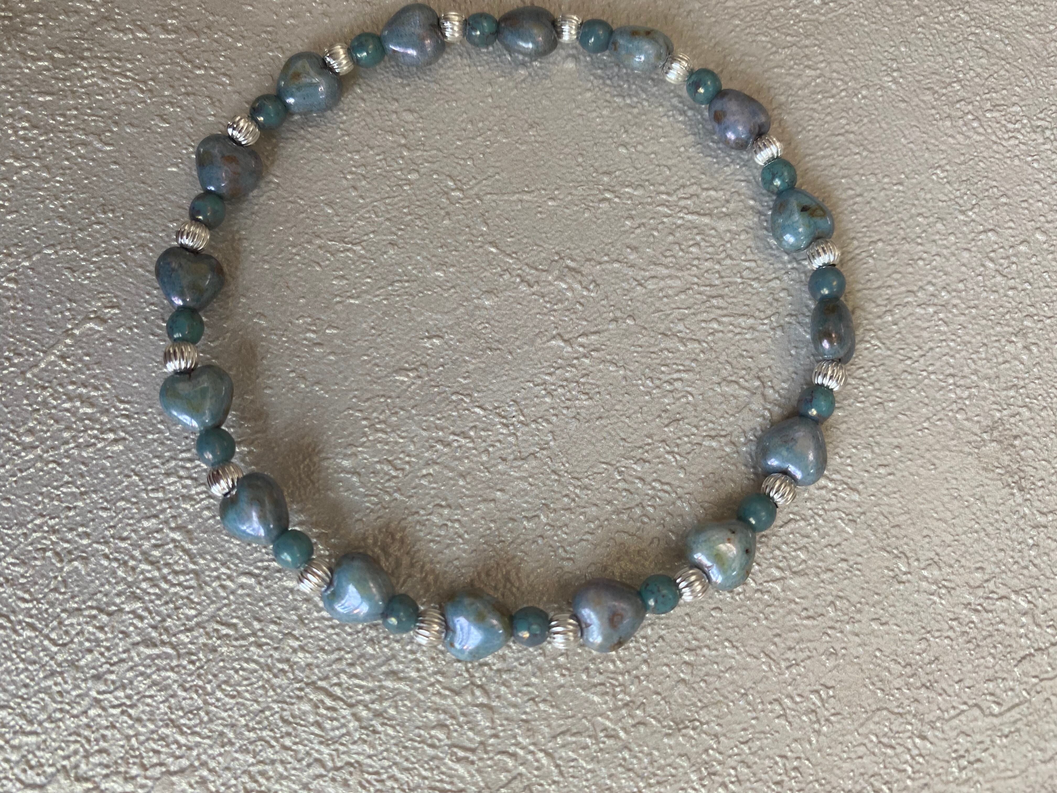 ターコイズとはまた違う深いアンティークブルーで天然石のような一粒一粒違う色♡