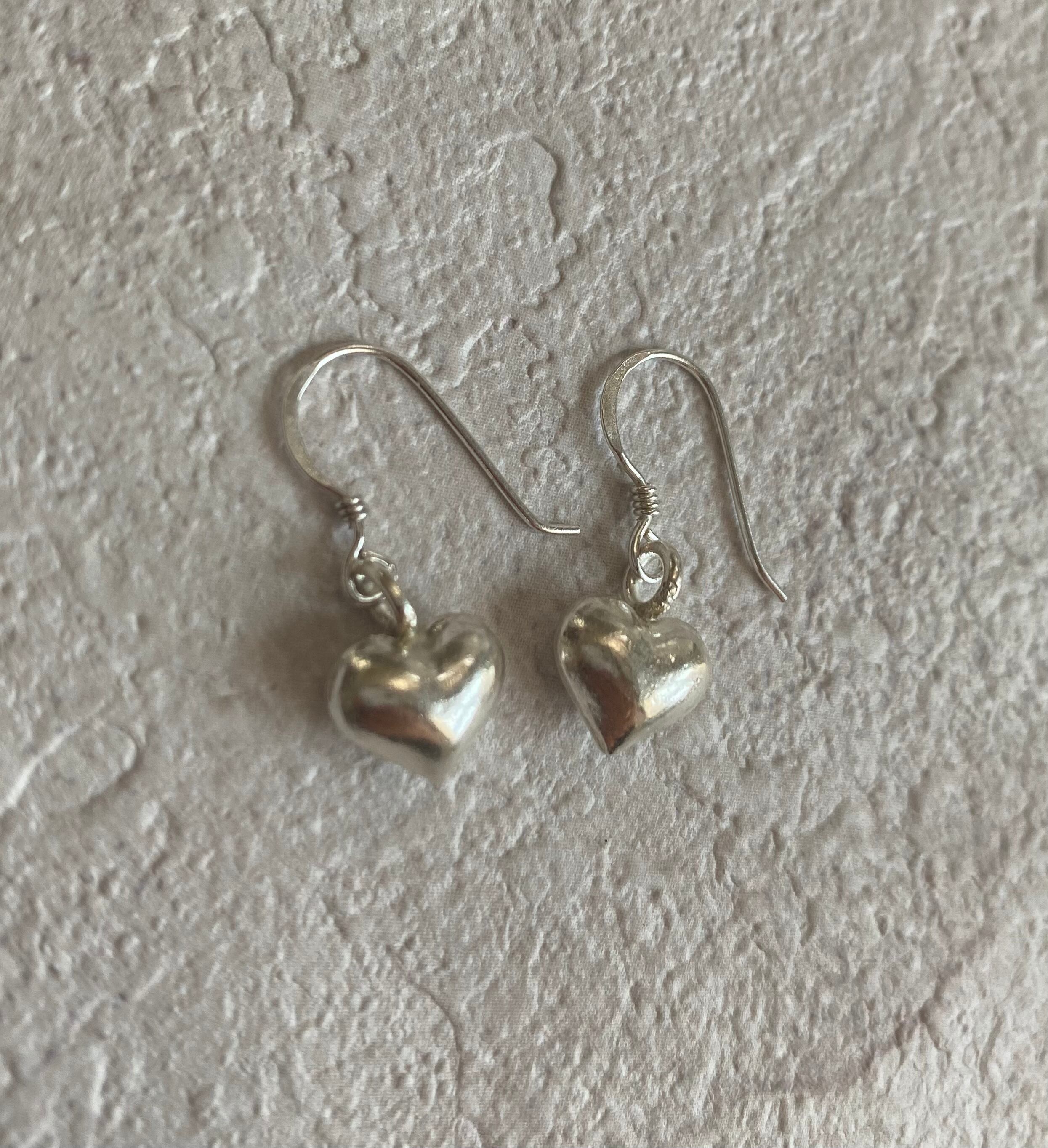 カレンシルバーのぷっくりハートが可愛いすぎるのでシンプルにフックピアスにしました。