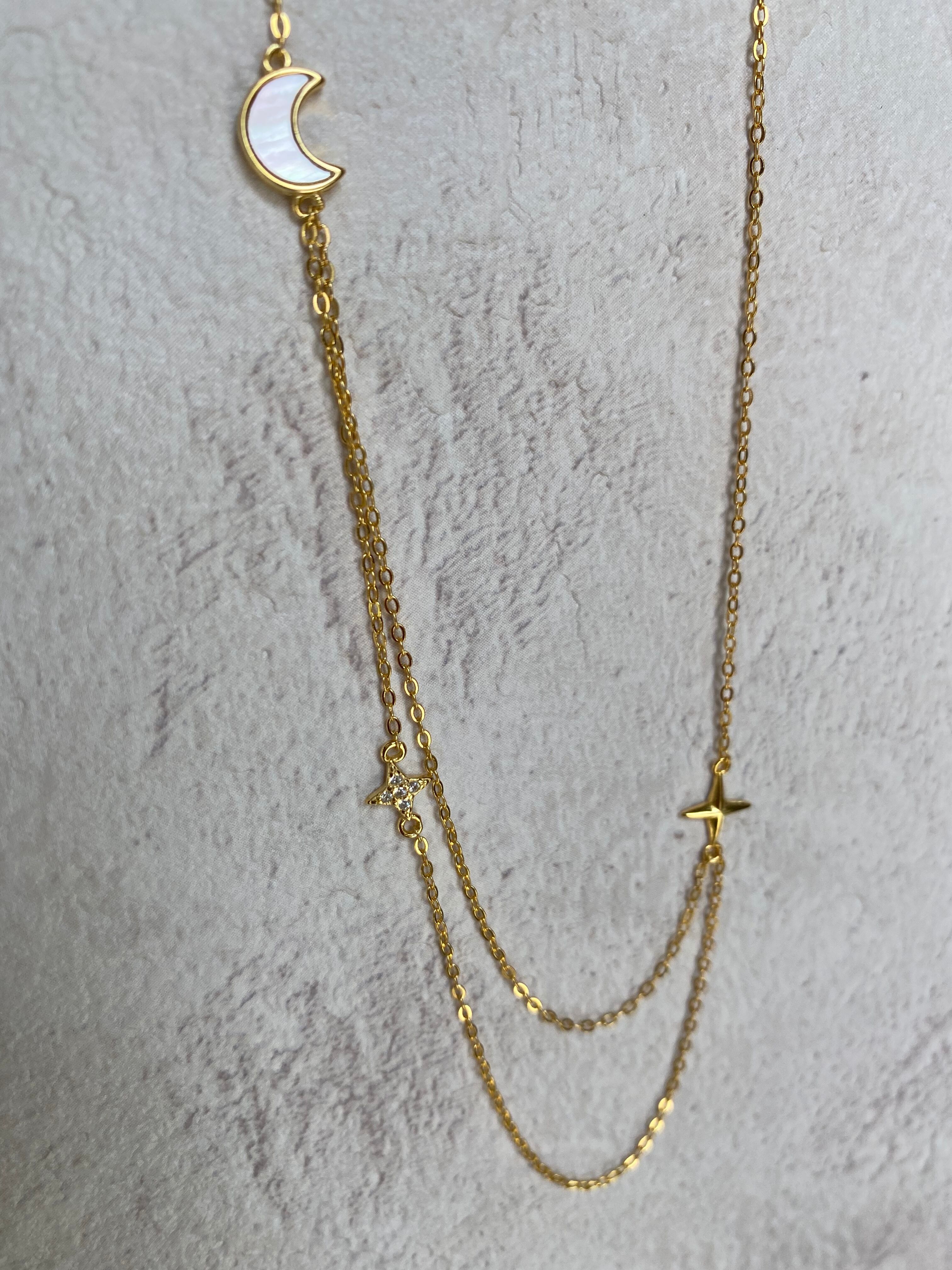 ムーンチャームとキュービックジルコニア使用のスターチャームが付いています。