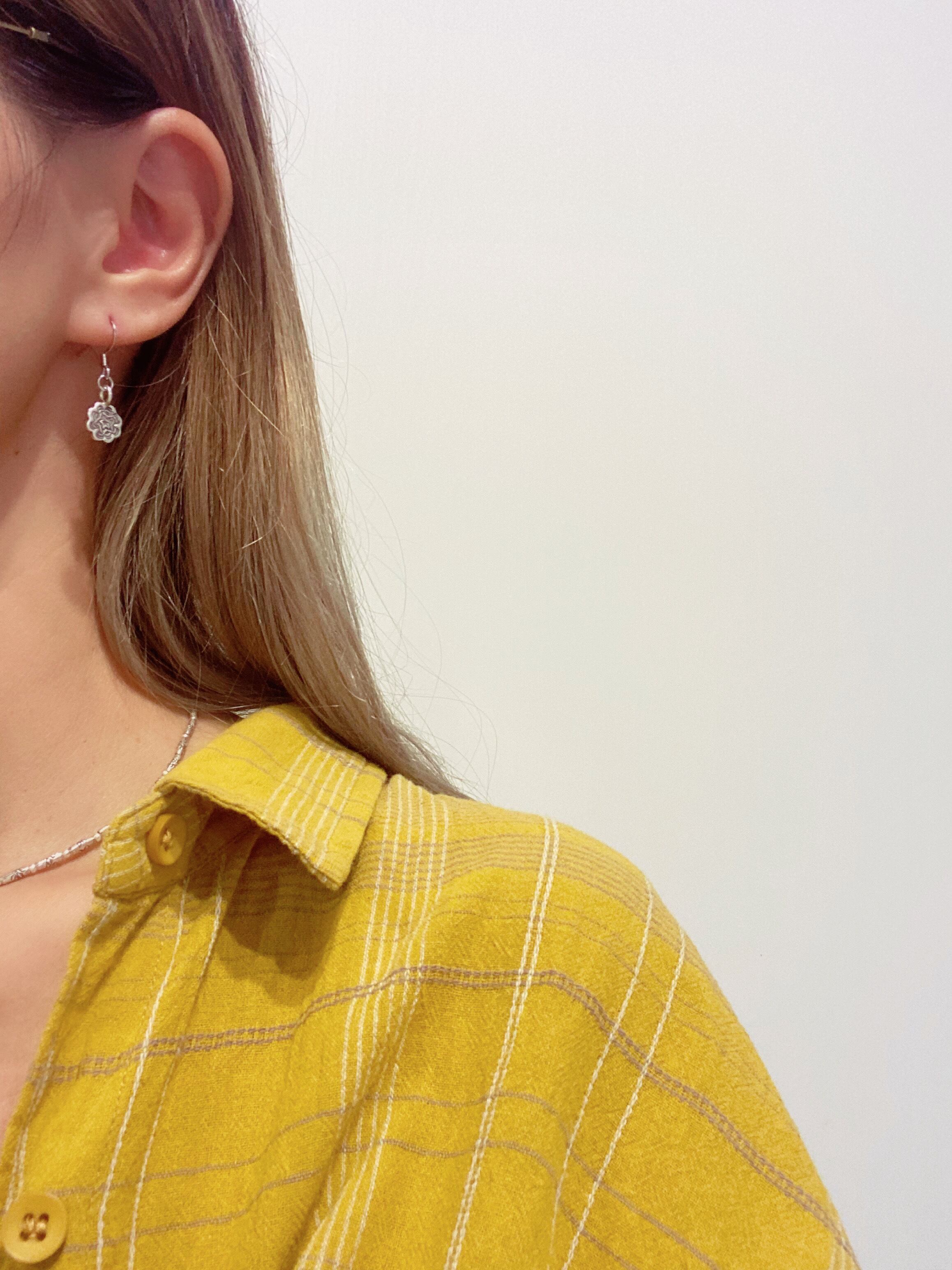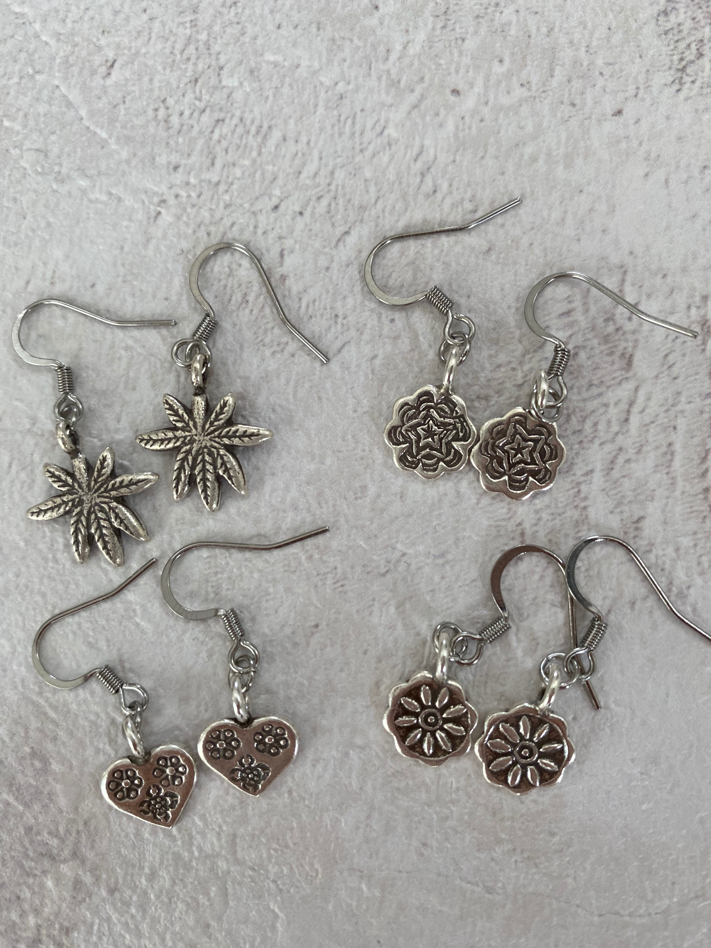 一つ一つ手作りのカレンシルバーのチャームを使用したフックタイプのピアスです。