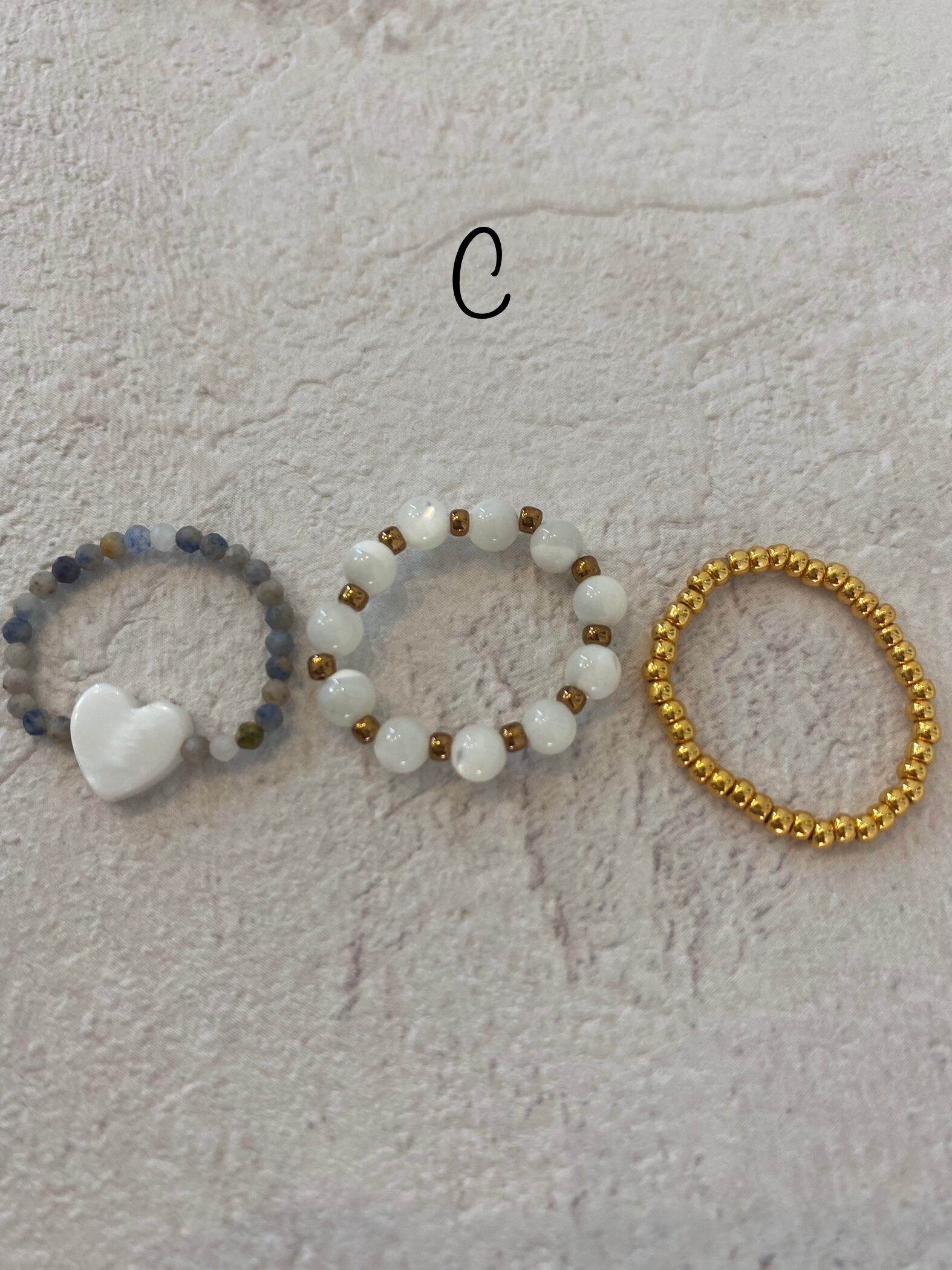 C…ブルーストーンとシェルハートビーズ