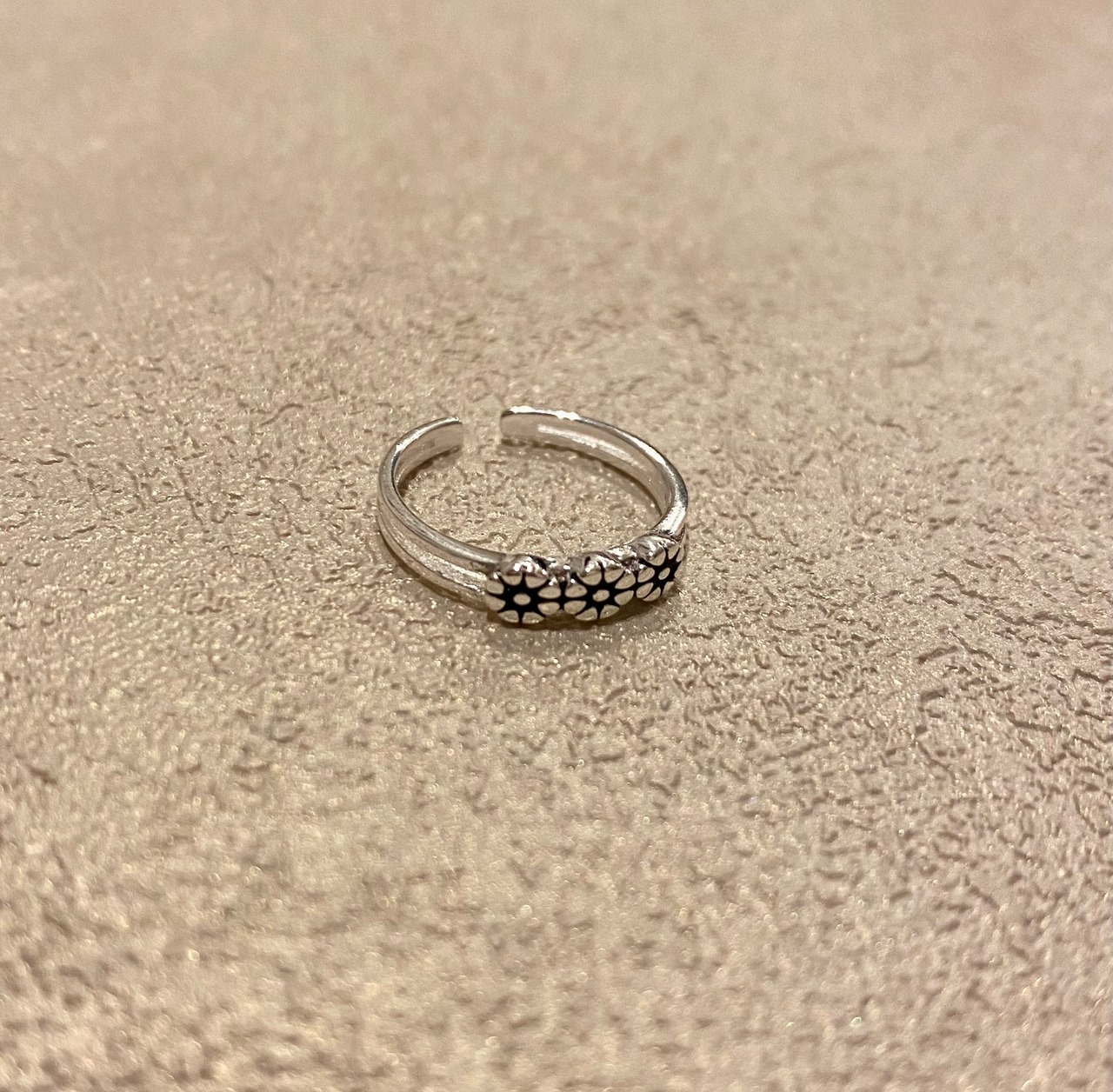 silver925 で柔らかく、リングが繋がってるタイプではないので調節可能なフリーサイズですが、ピンキーリングにオススメです。