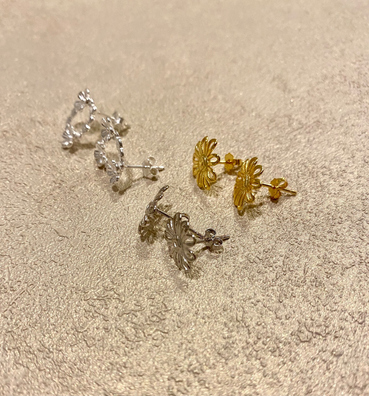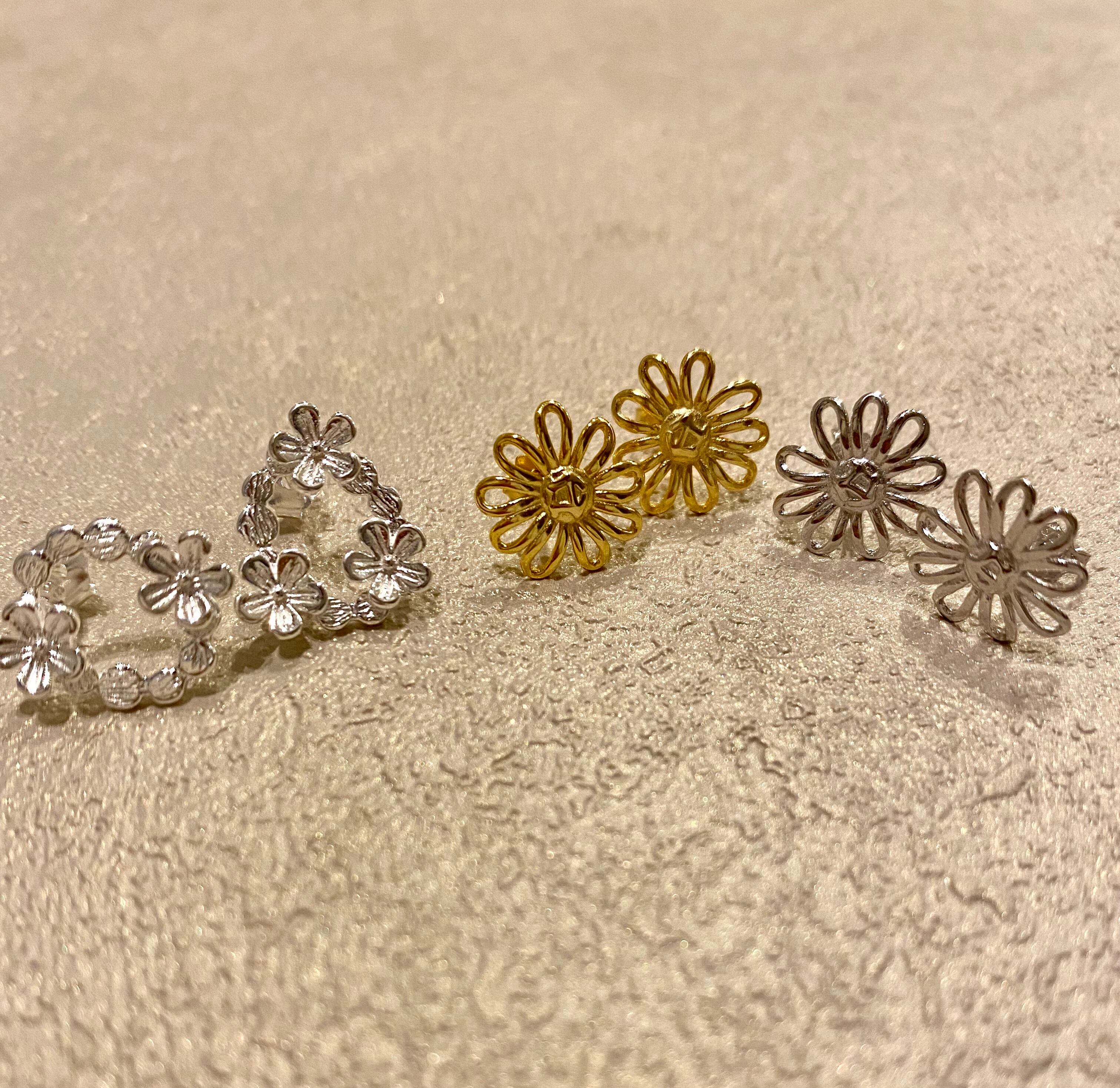 3種類のフラワーピアスです。