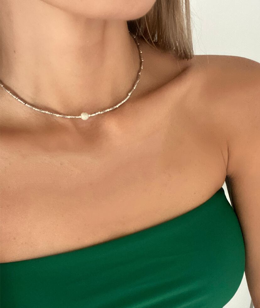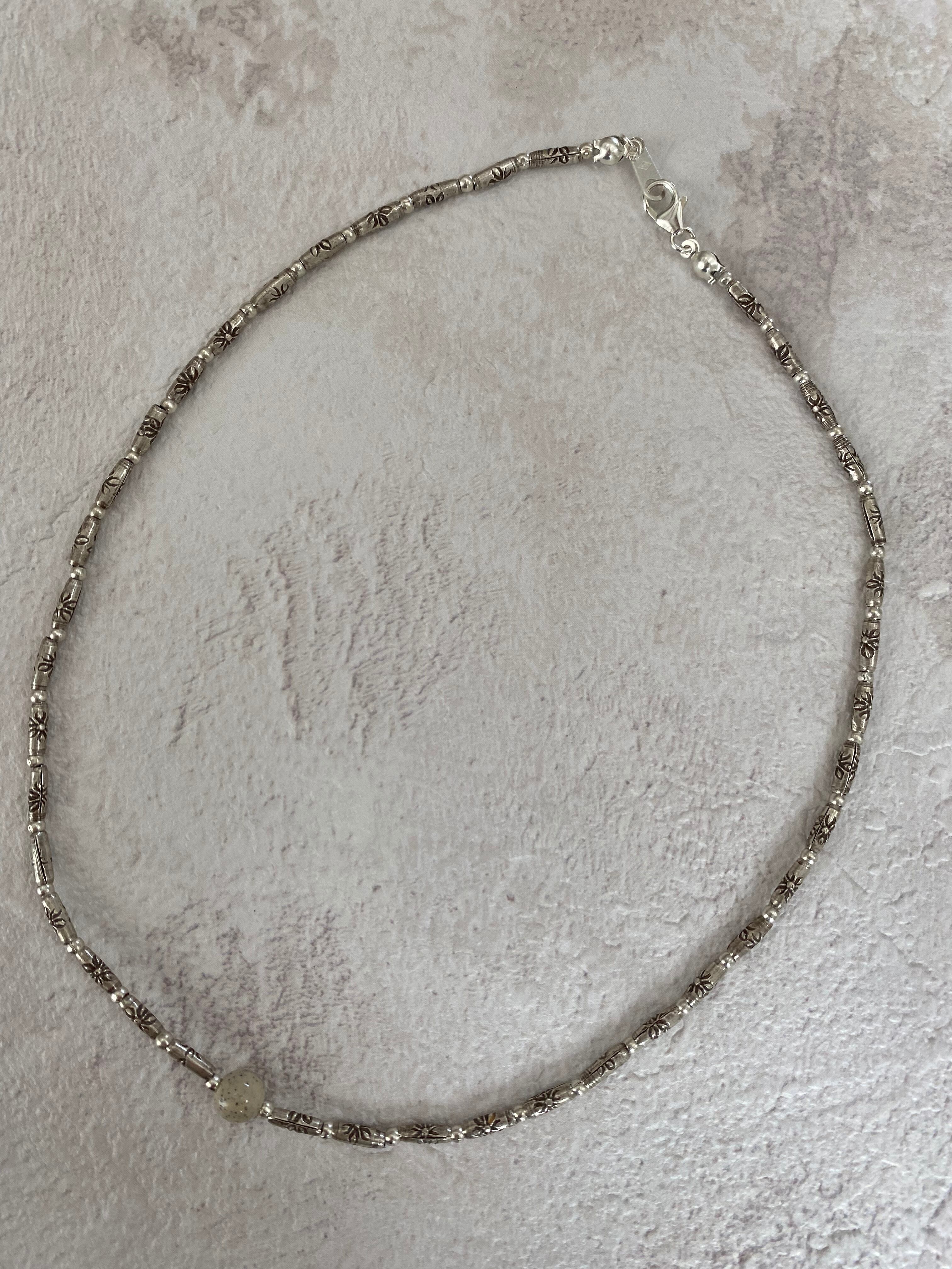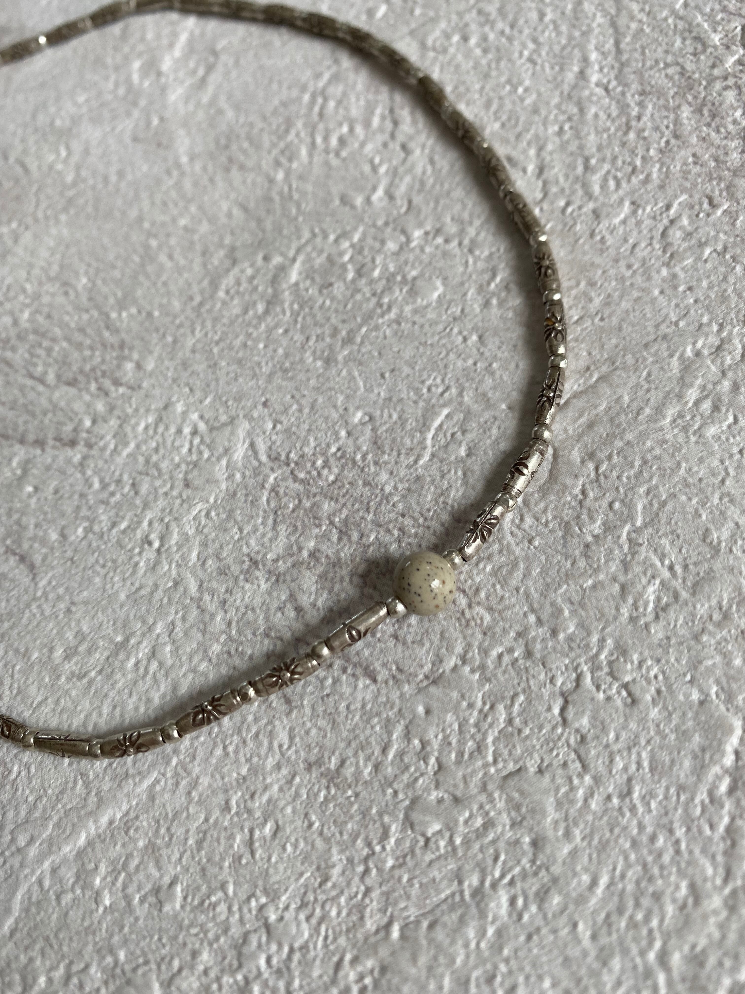 一つ一つ手彫りの柄の入ったカレンシルバーのビーズにほくとう石のチャームのネックレス(チョーカー)です。