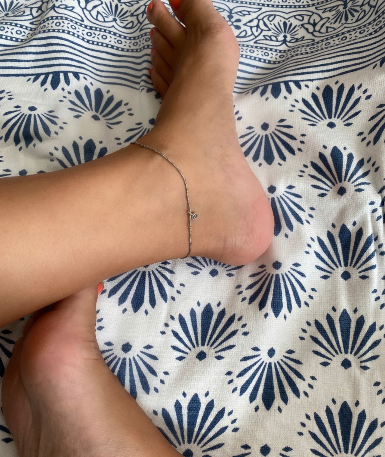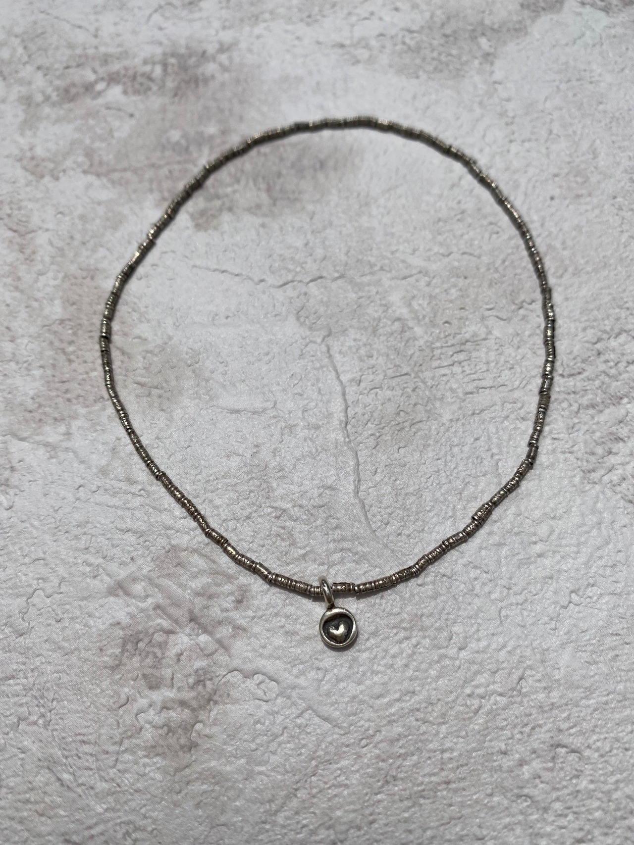 カレンシルバーの小さなチューブを使ったアンクレットです。