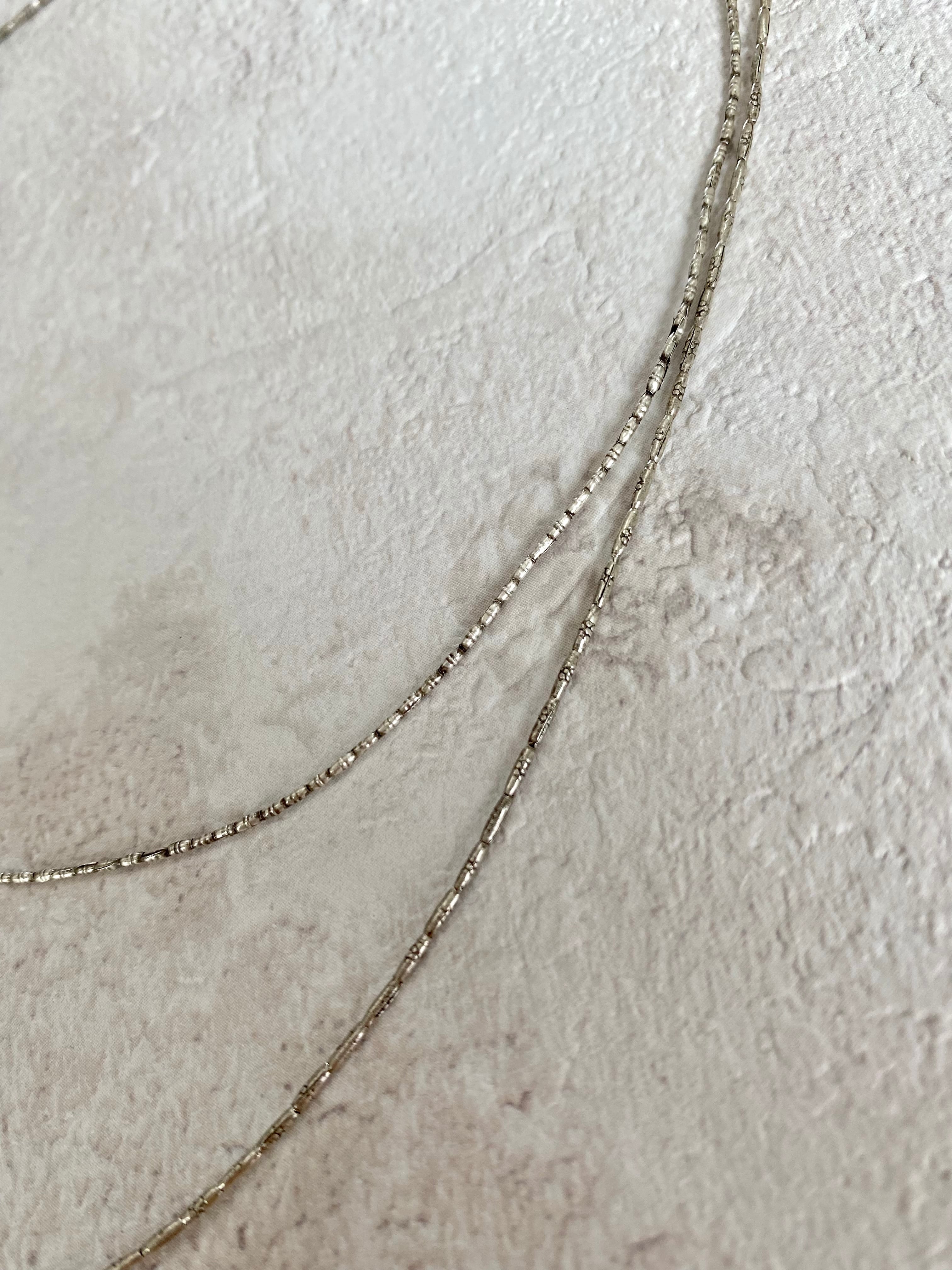 異なる種類のカレンシルバーを使用した2連のネックレスです。