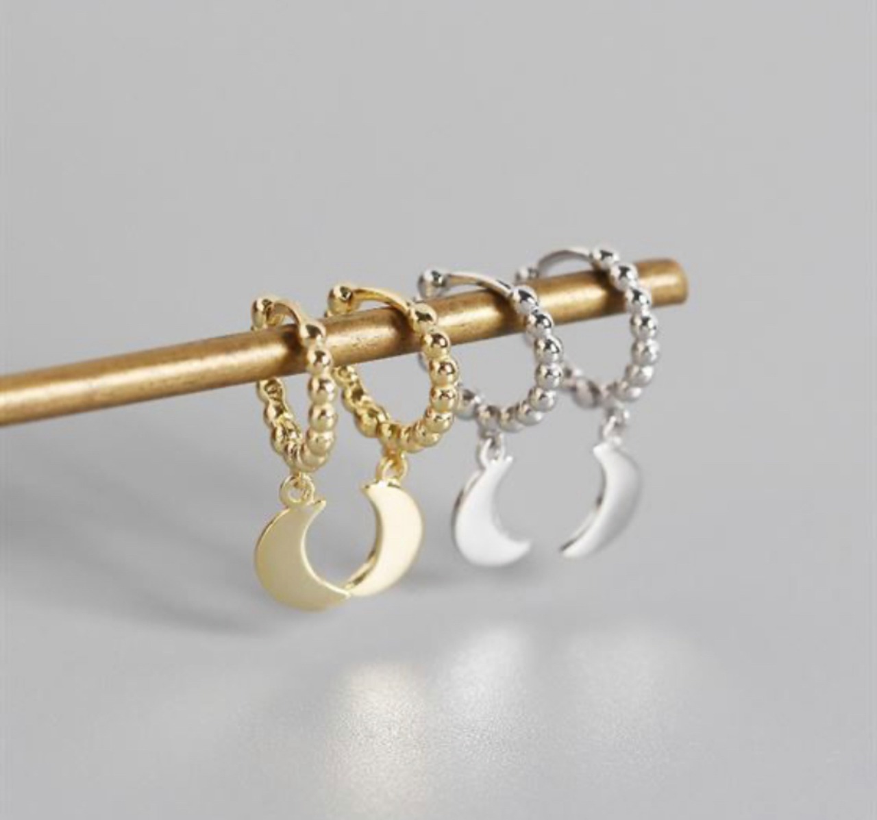 ゆらゆら揺れる小さめムーンピアス。