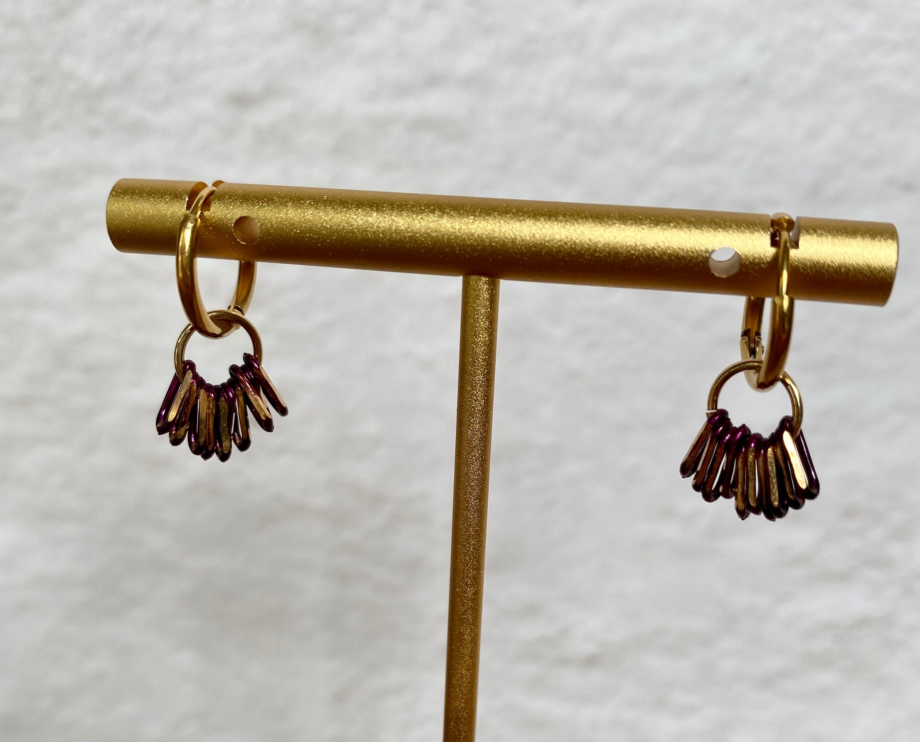 チェーンフリンジが揺れるキャッチレスなワンタッチタイプのピアスです。