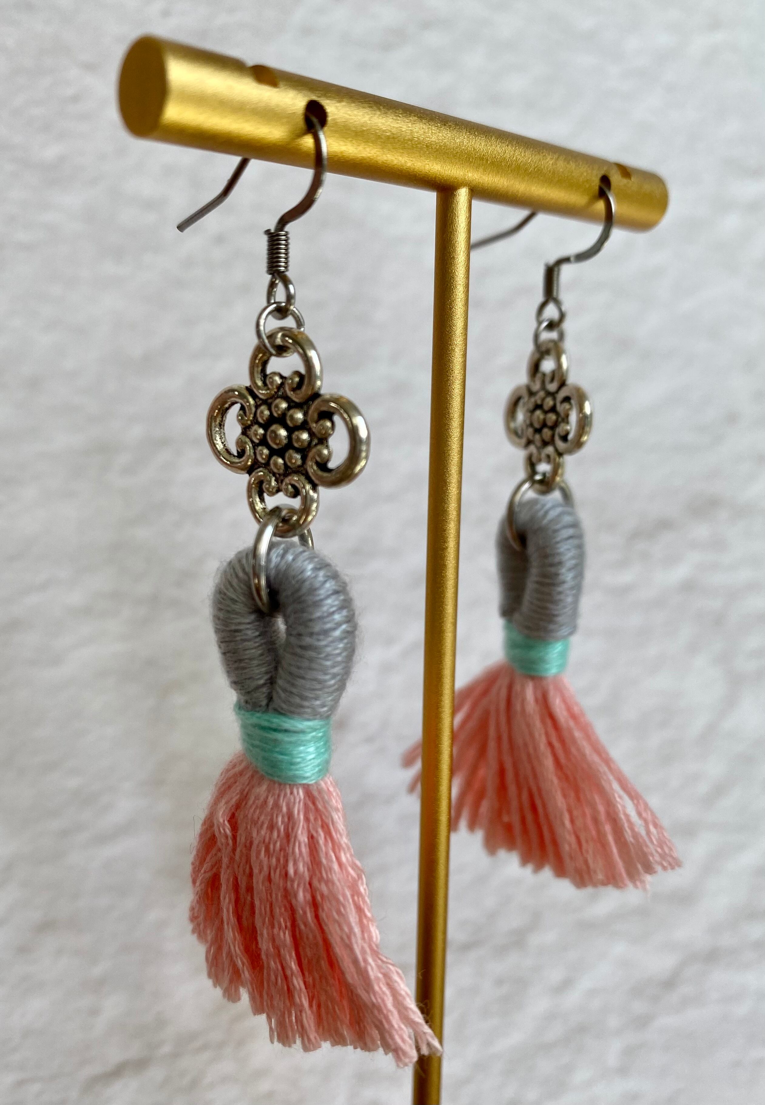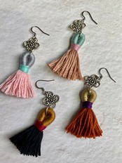 それぞれの配色が可愛い、季節問わずお使いいただけるタッセルピアスです。