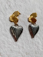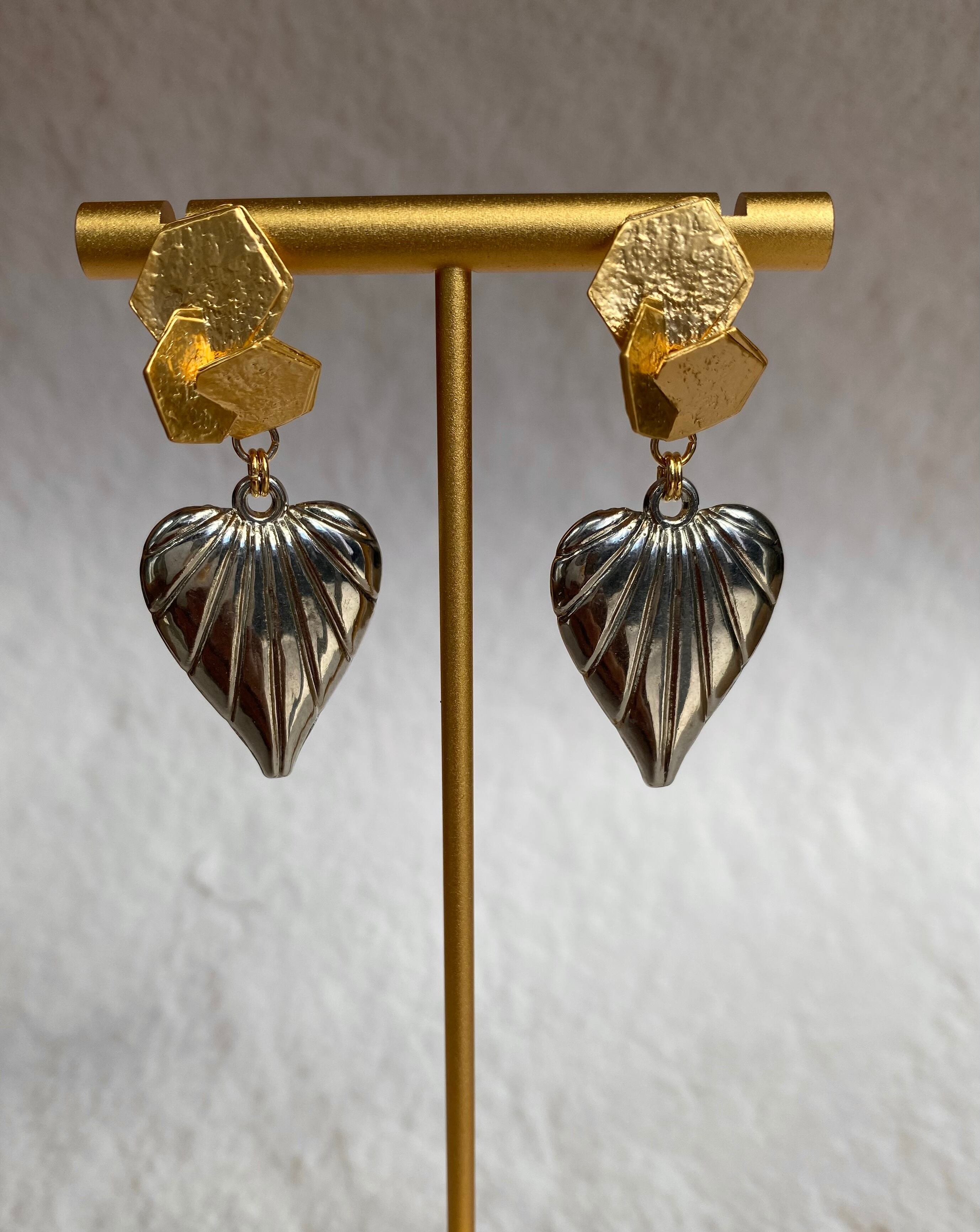 トリプルヘキサゴンがおしゃれなバイカラーハートピアスです。