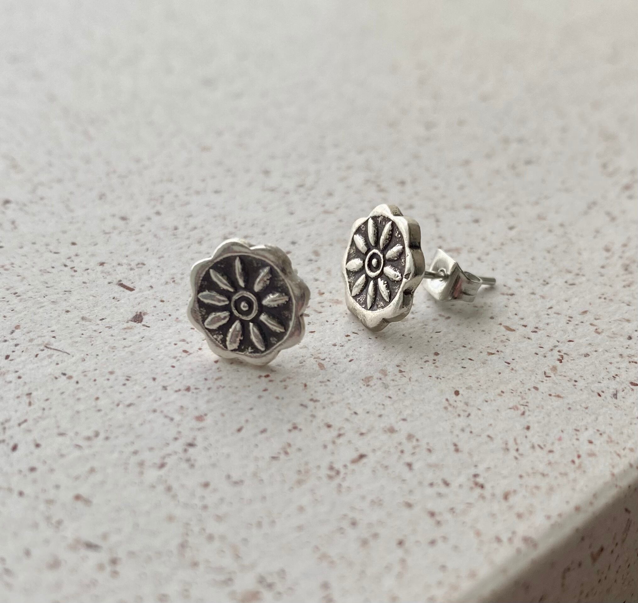 カレンシルバーのカジュアルなフラワーピアスです。