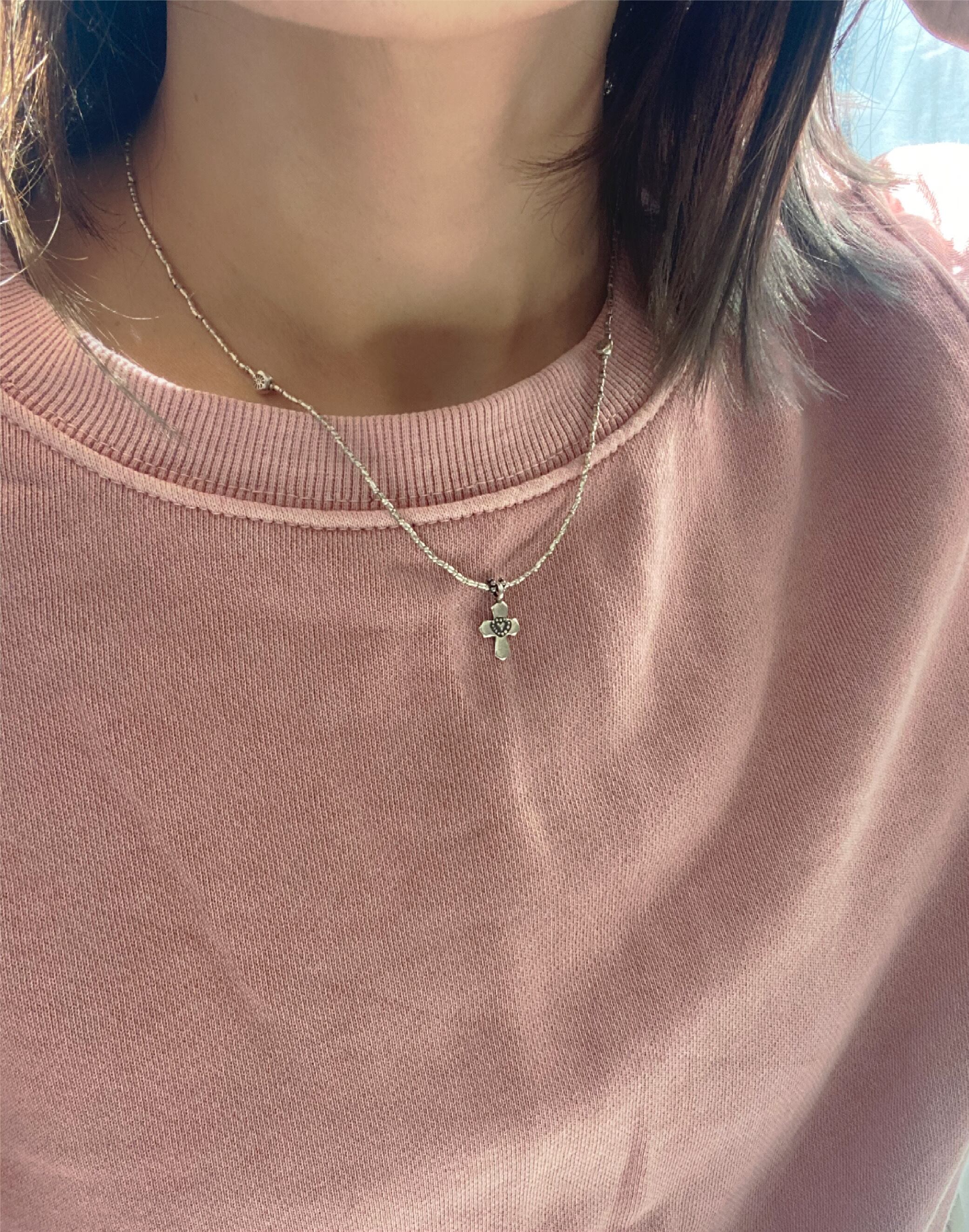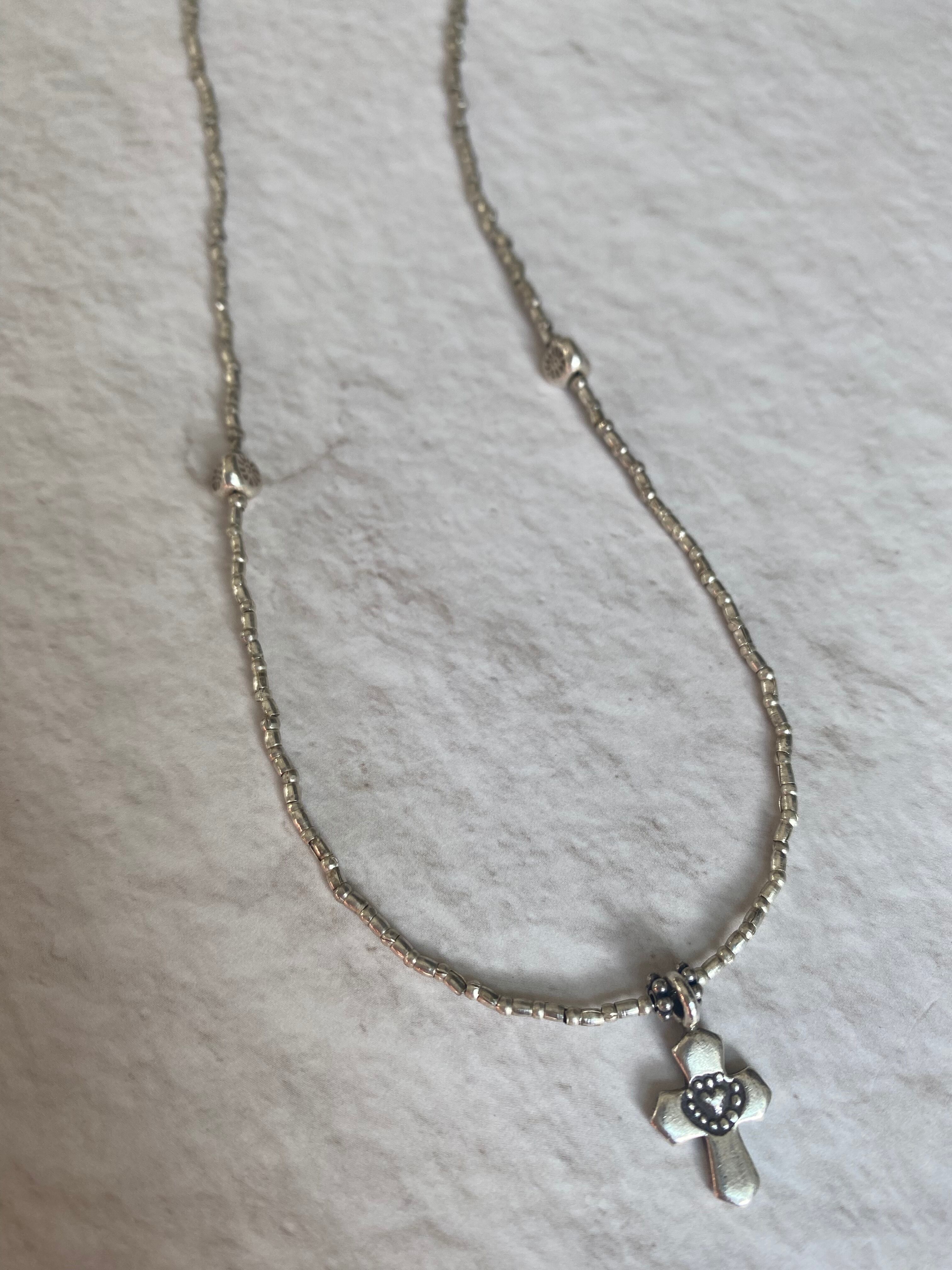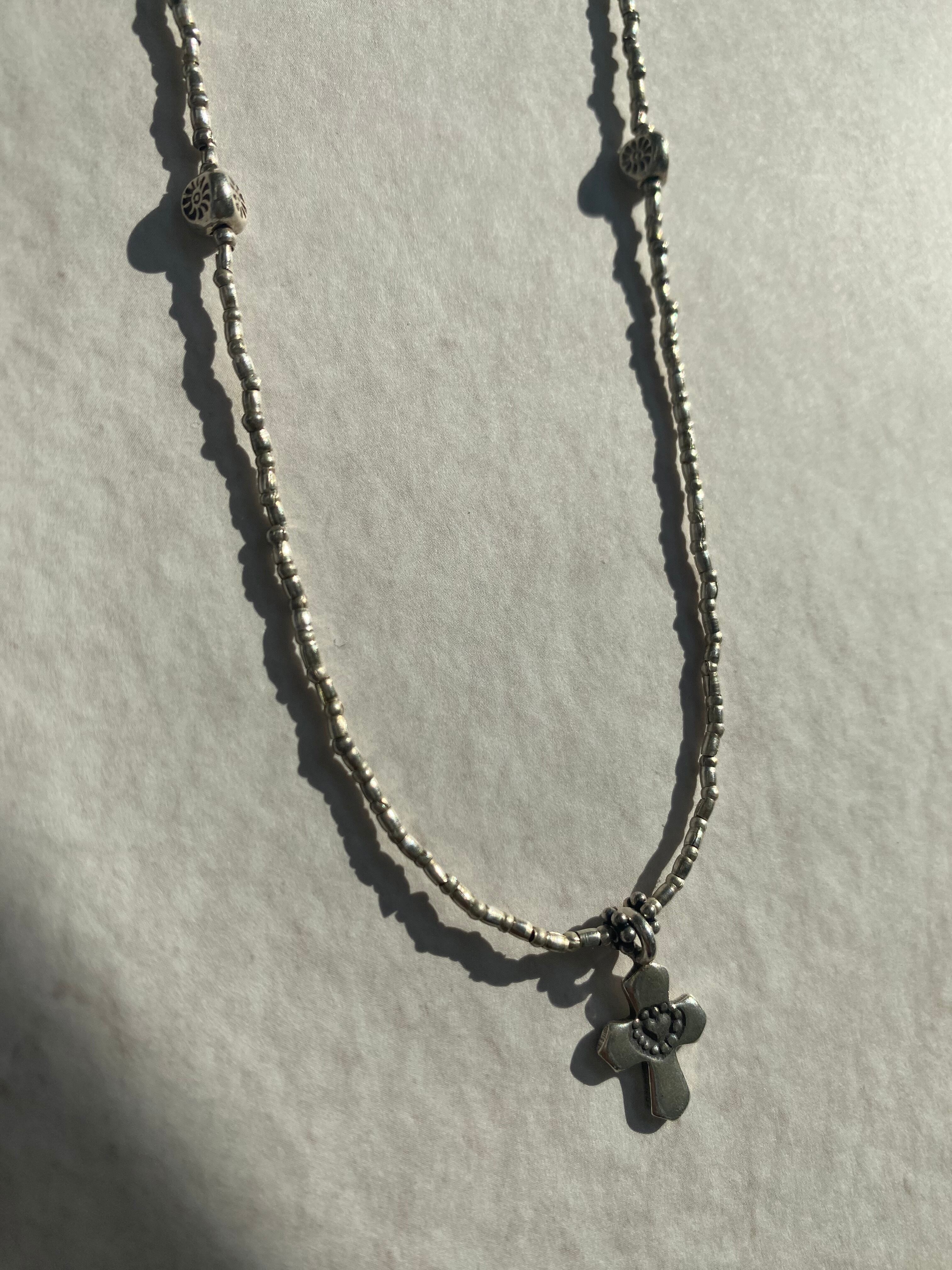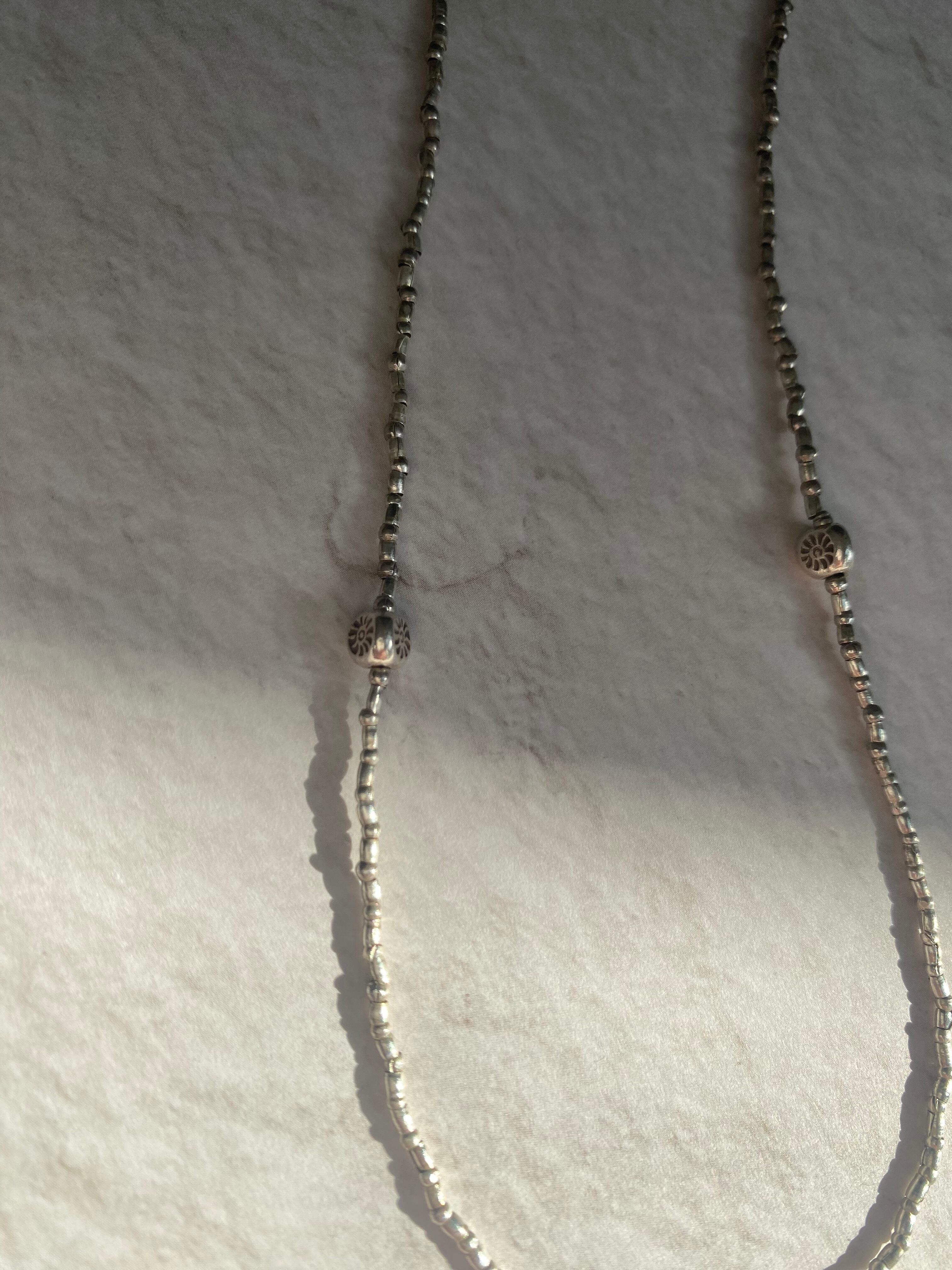 一粒一粒手作りの少しいびつで温かみのある、マットな質感のカレンシルバーを使用したネックレスです。