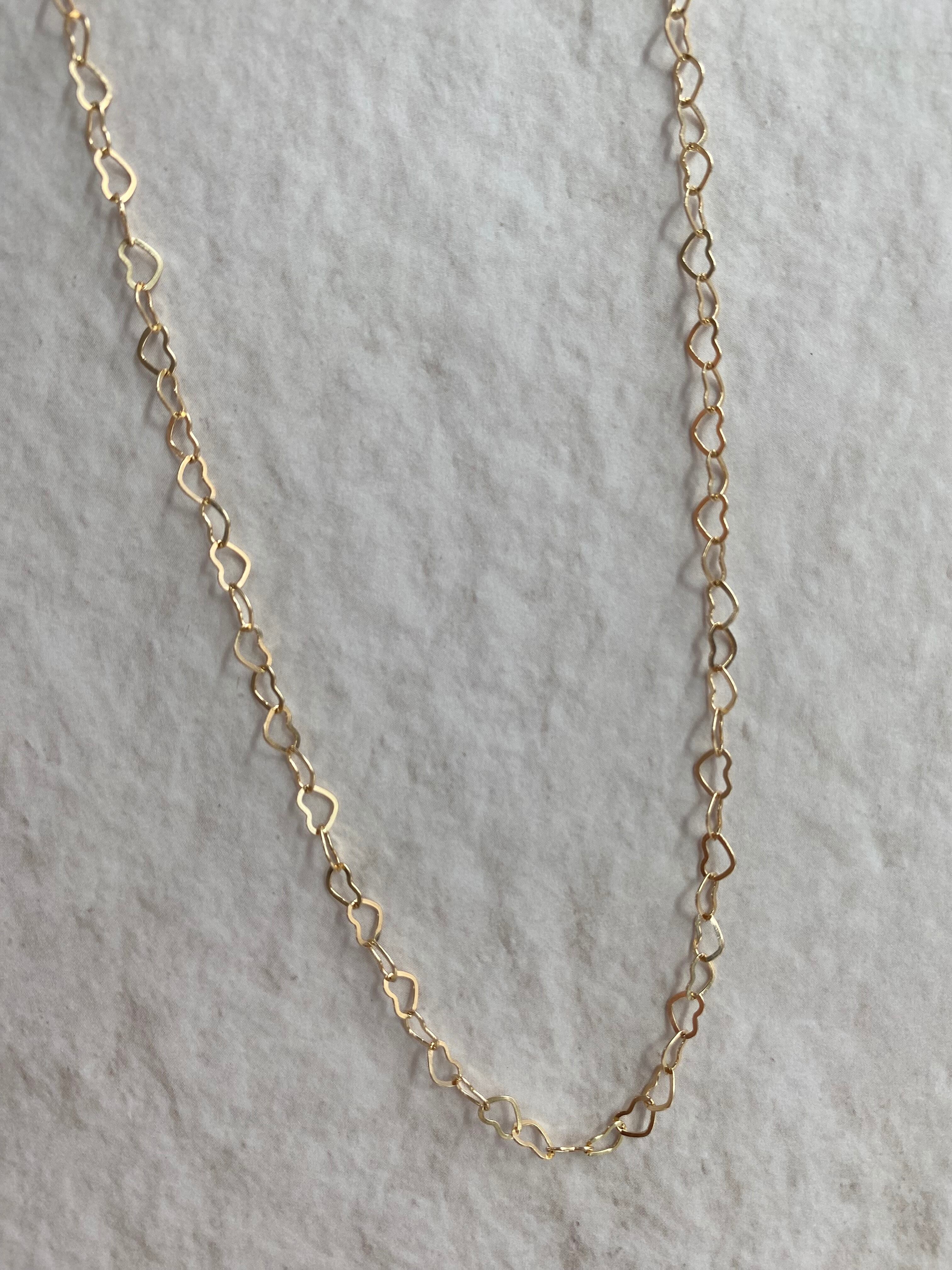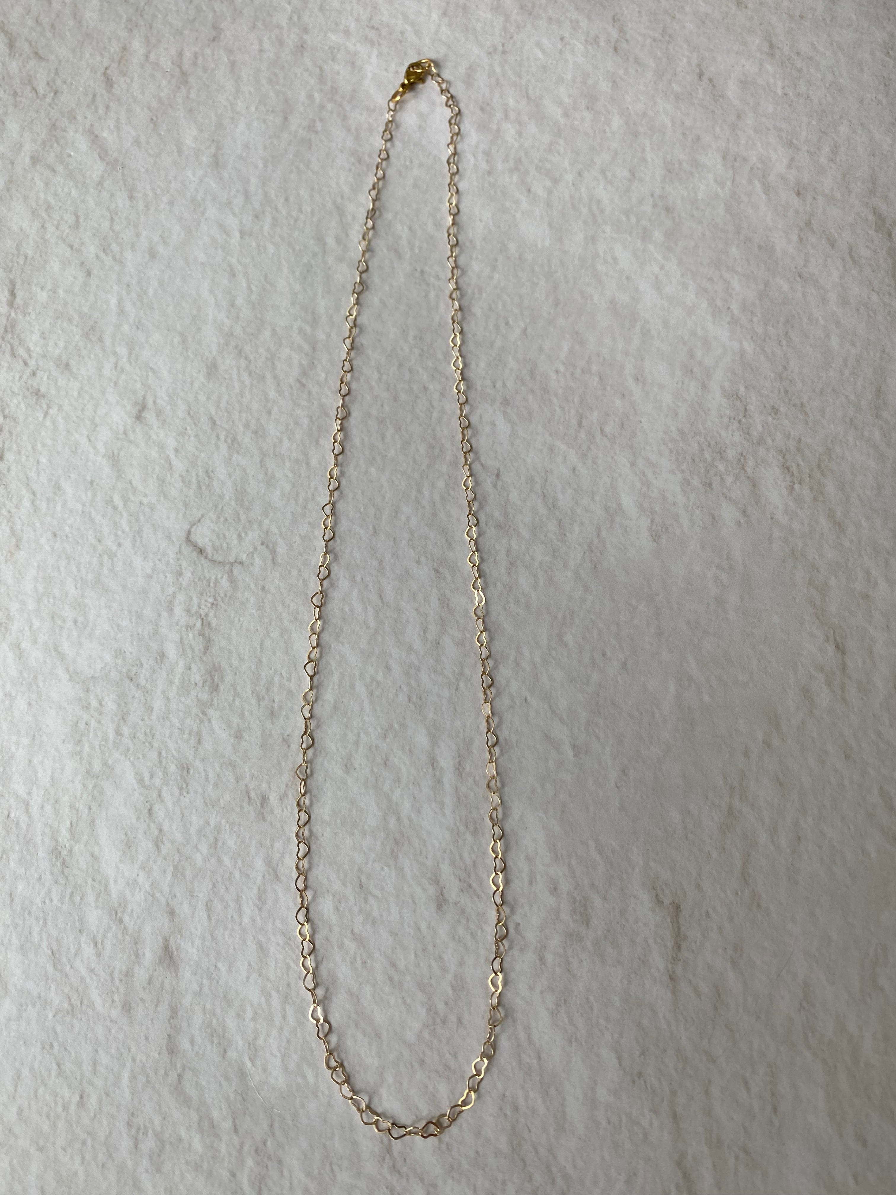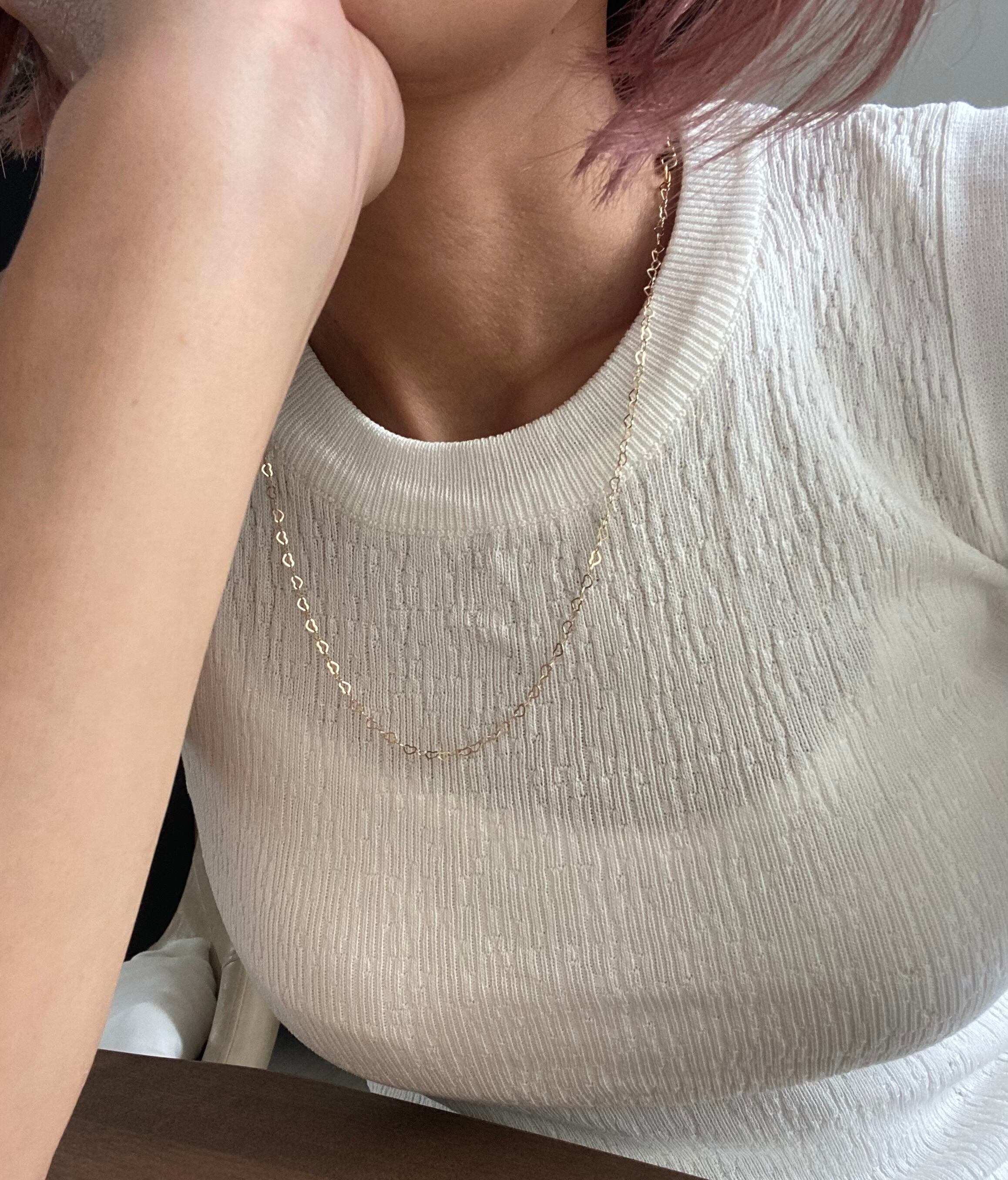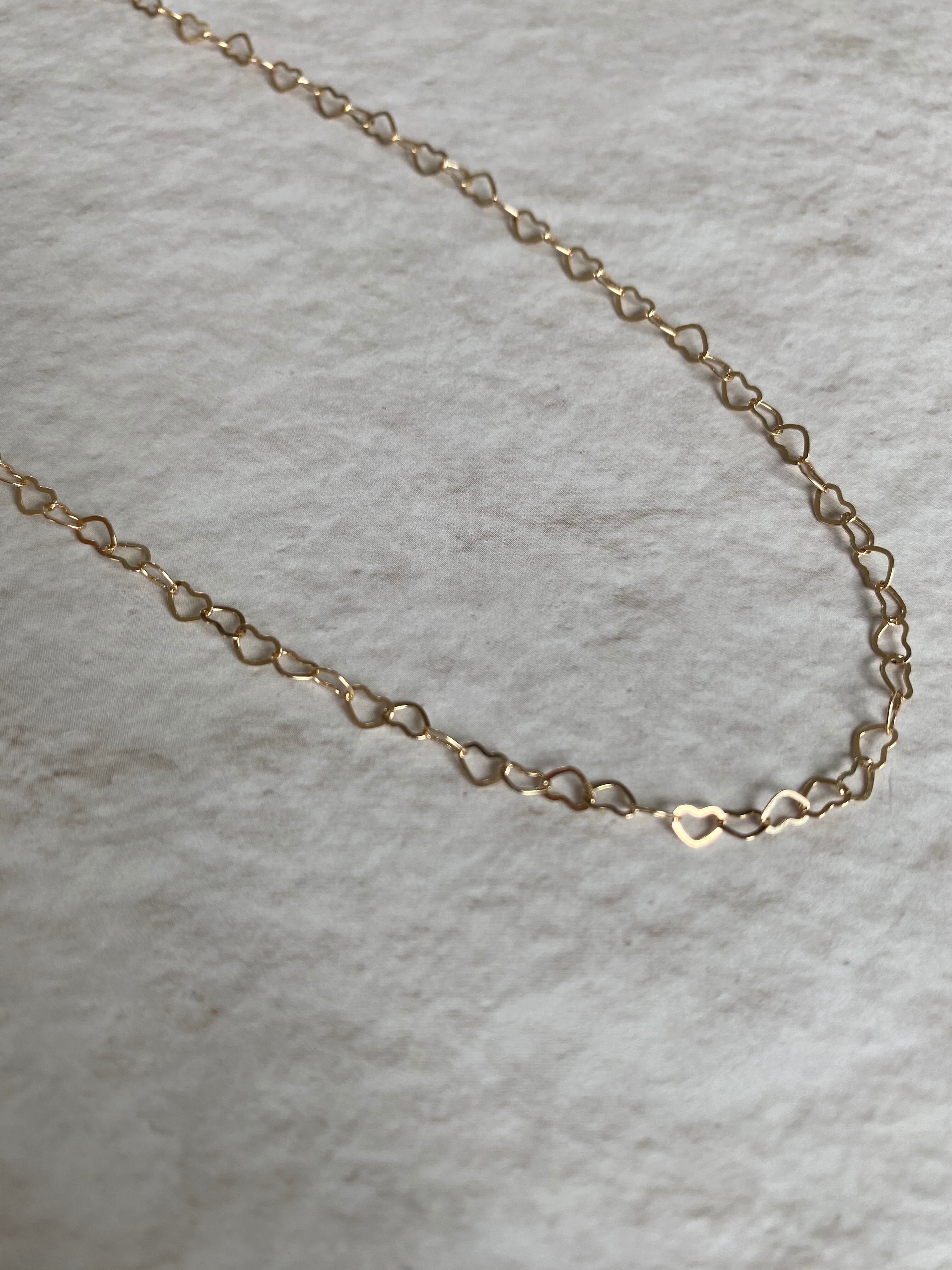 向きの違う小さなハートが繋がったゴールドのネックレスです。