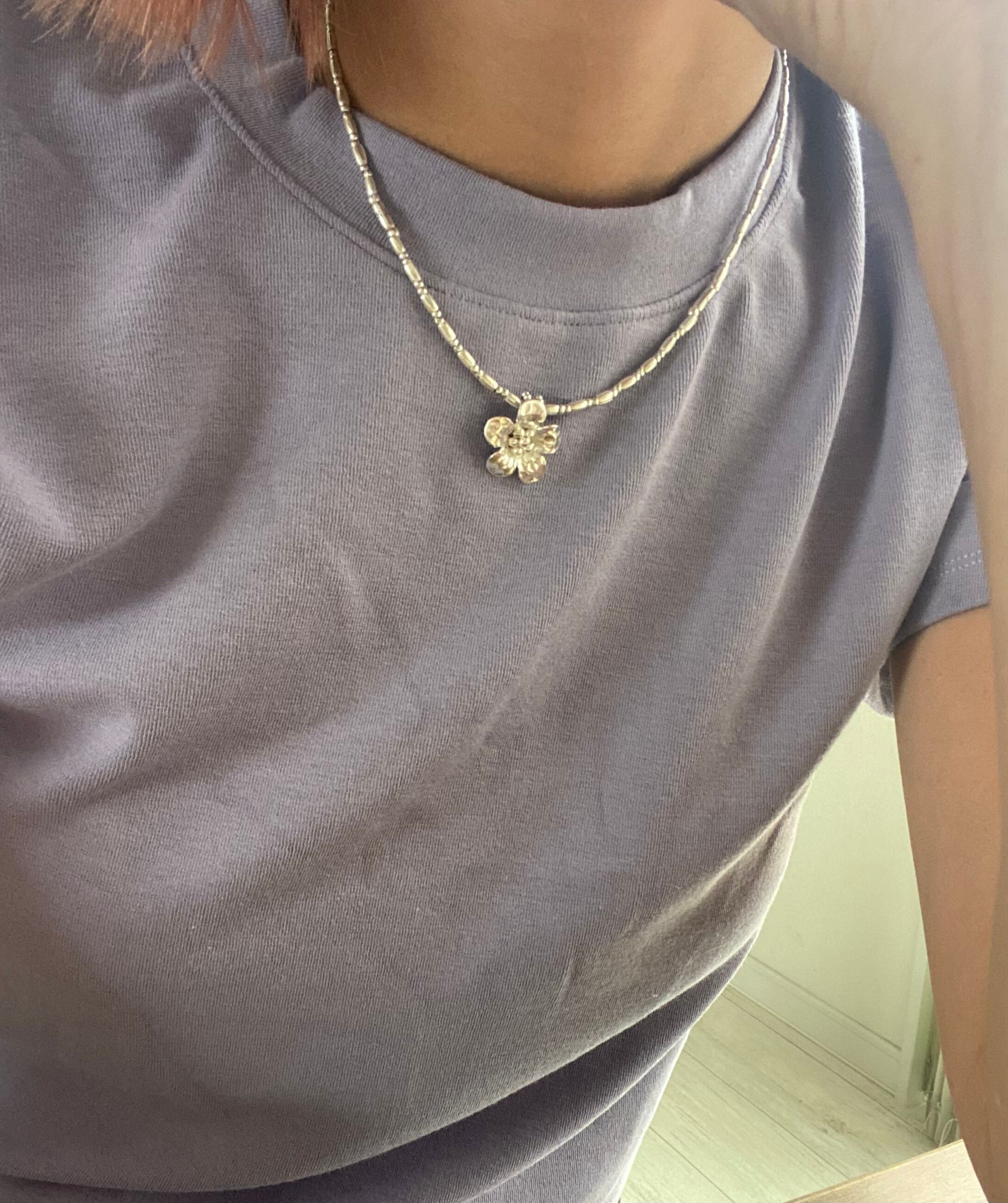 フラワーチャームがステキなカレンシルバーのネックレスです。