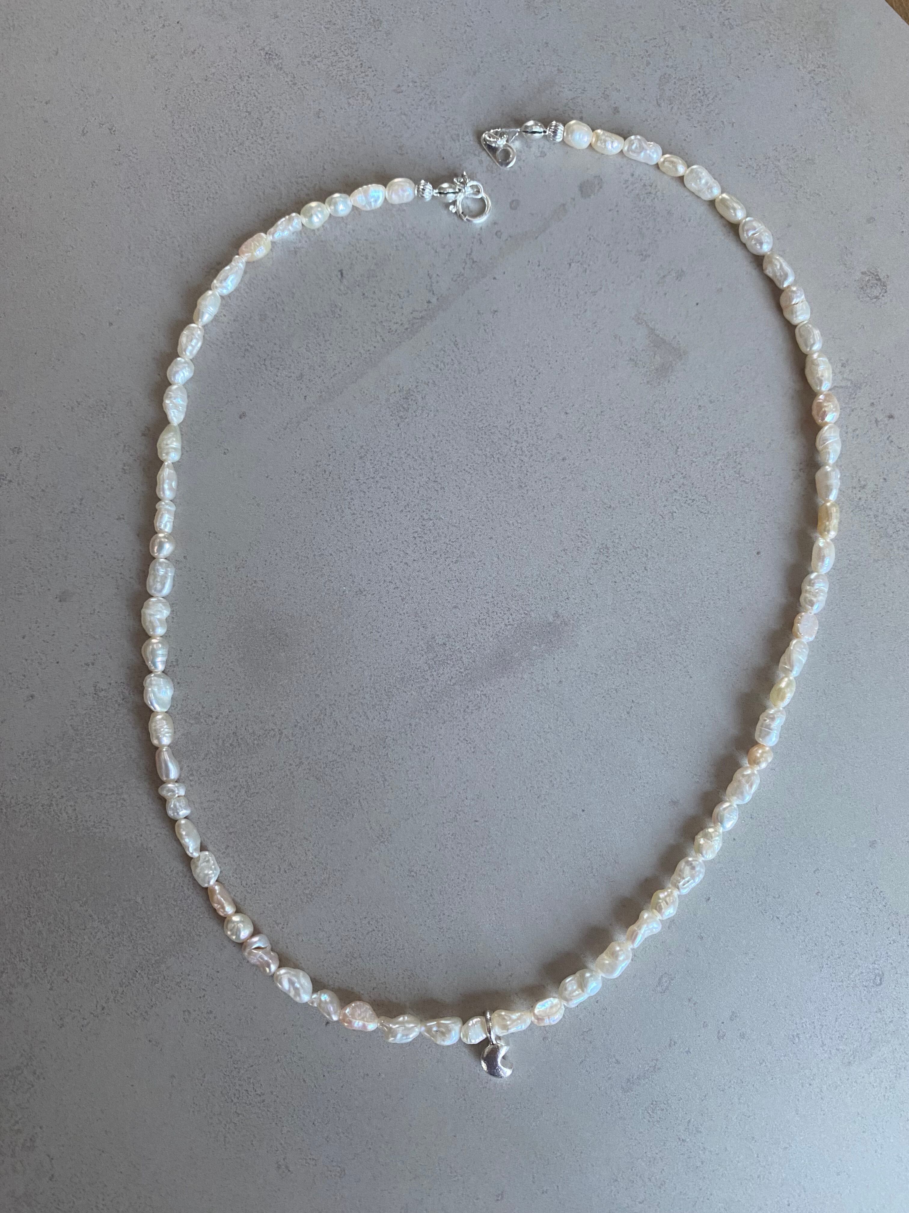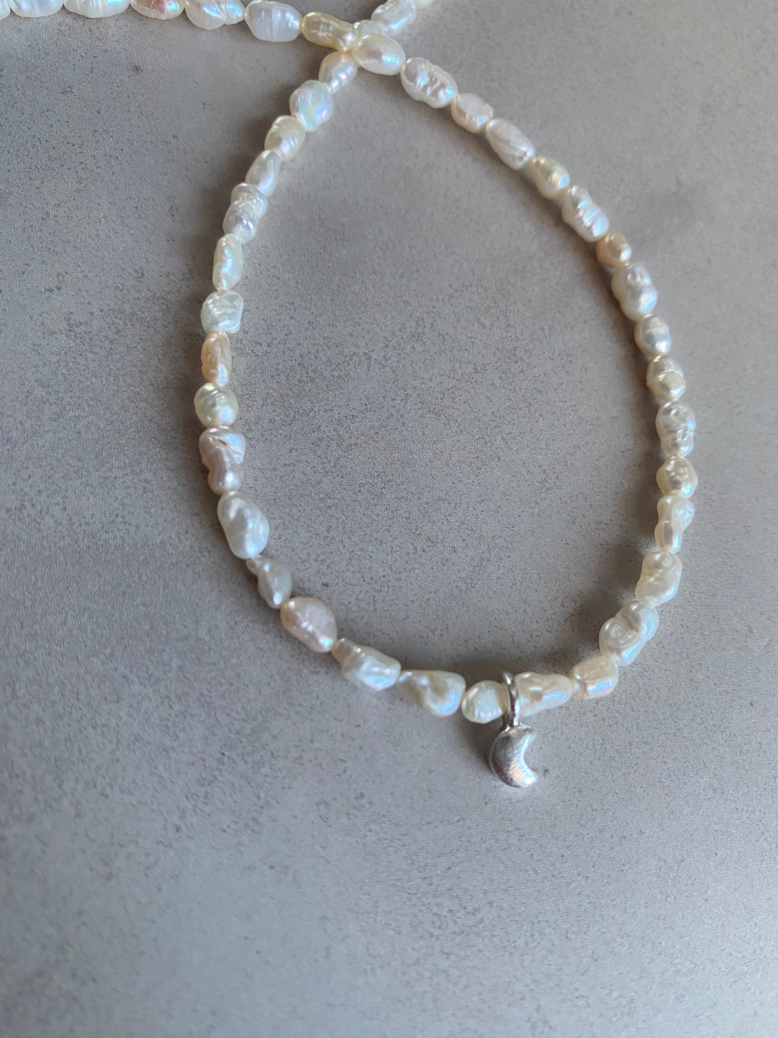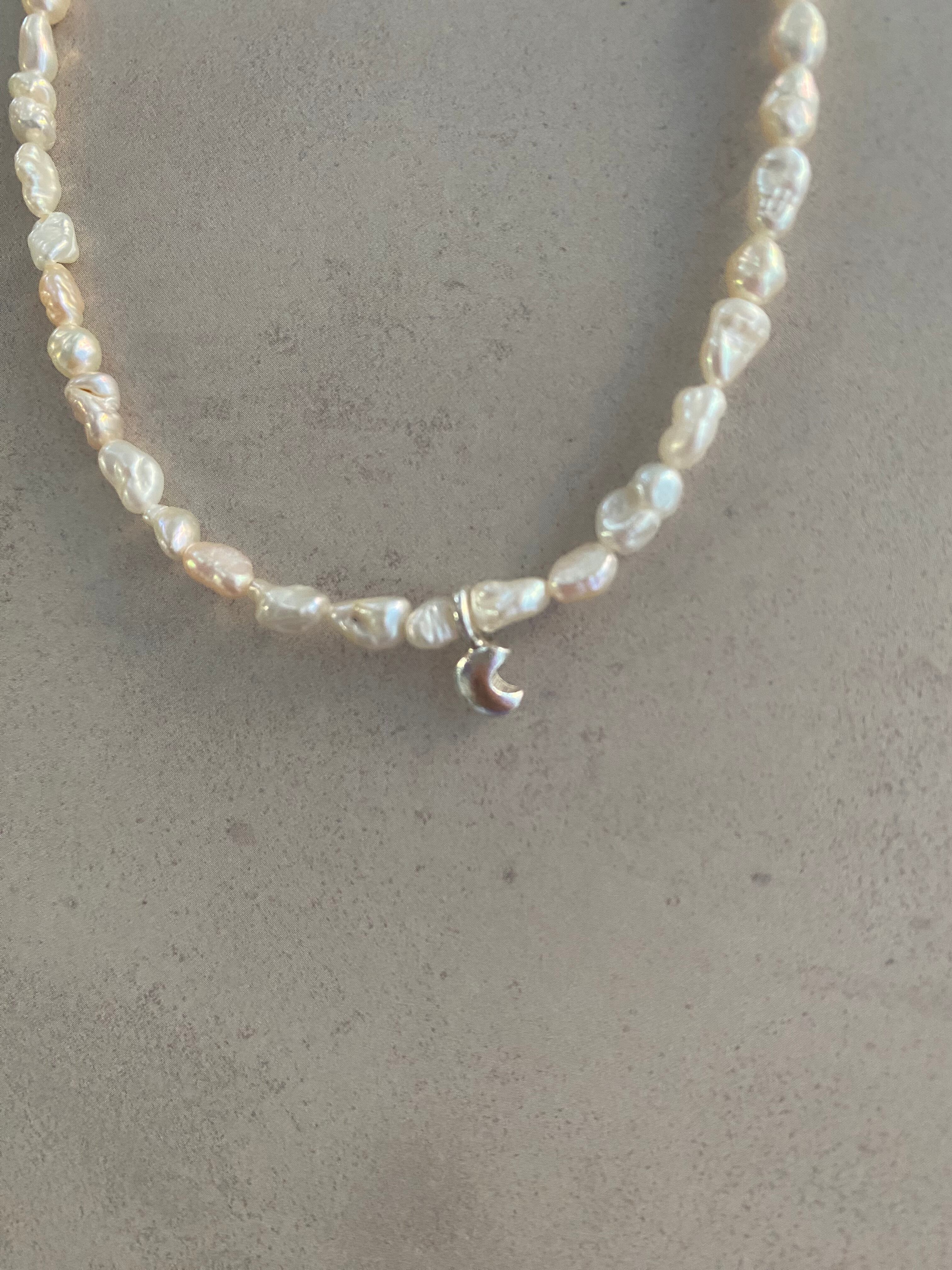 淡水パール ネックレス ムーンチャーム カレンシルバー silver925